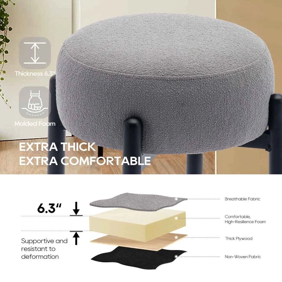 Sink into our ultra-thick, ultra-soft seat cushion for unparalleled comfort during long gatherings or quick breaks. Made with premium lambswool fabric, our stool combines luxury and durability for an elegant seating experience. Enjoy freedom of movement with our stylish backless stool, adding a modern touch to any space.