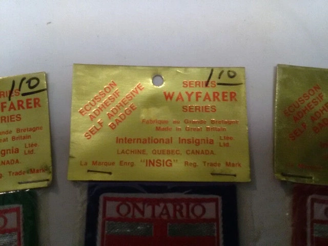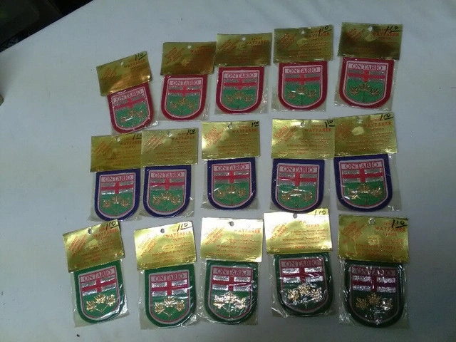 Up for sale we have 15 Ontario Material Patches There is 5 red, 5 blue and 5 green patches The are 2.5 inches by 33/4 inches in dimension the back of the package Reads( Remove plastic covering on back of badge Sewing on is Recommended all on New condition