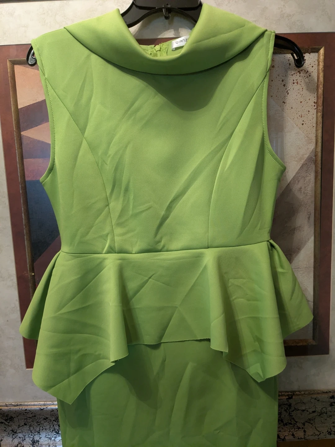 Make a statement in this stunning, vibrant lime green dress from QIANZHI. Perfectly blending modern edge with classic elegance, this dress features a unique structured peplum waist that creates a beautiful hourglass silhouette.