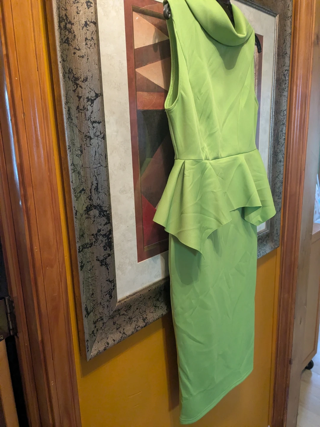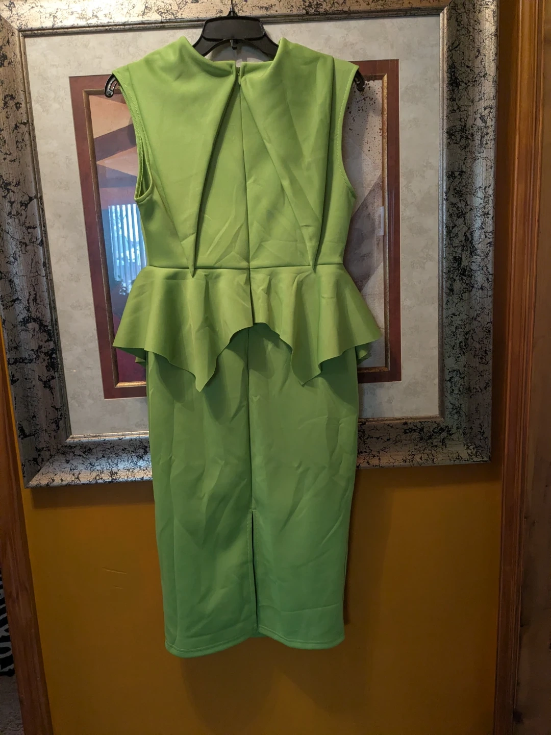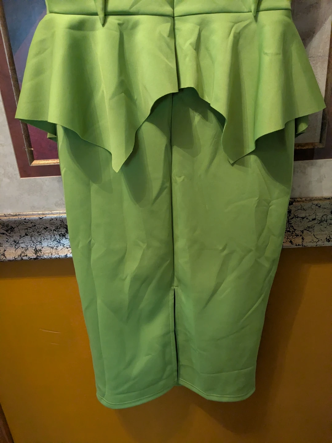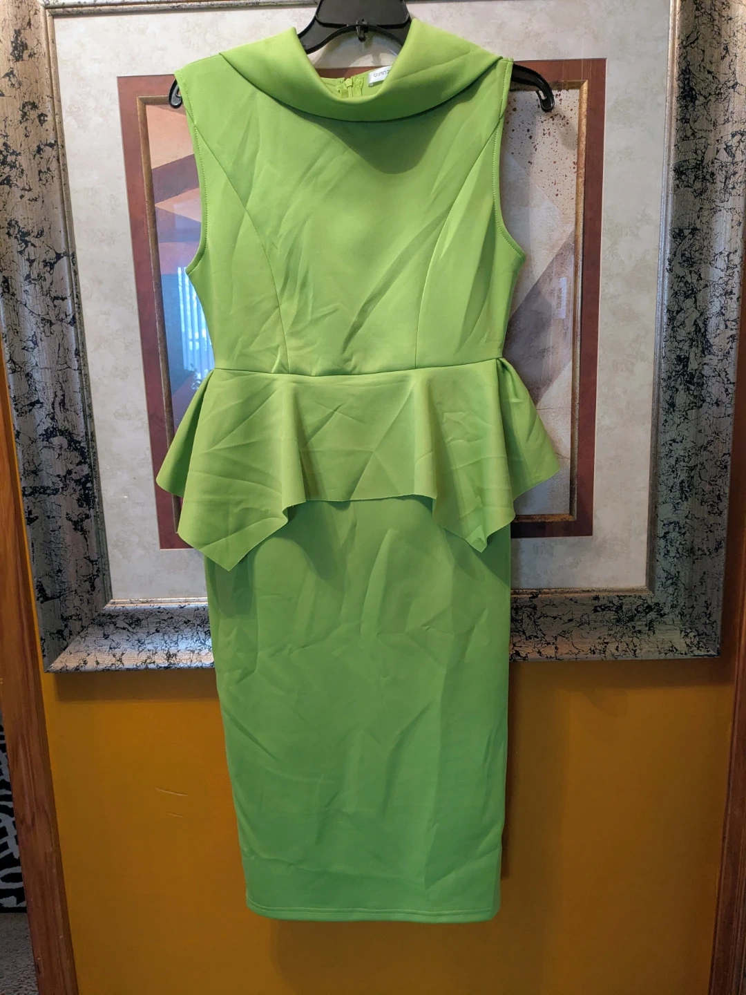 Make a statement in this stunning, vibrant lime green dress from QIANZHI. Perfectly blending modern edge with classic elegance, this dress features a unique structured peplum waist that creates a beautiful hourglass silhouette.
