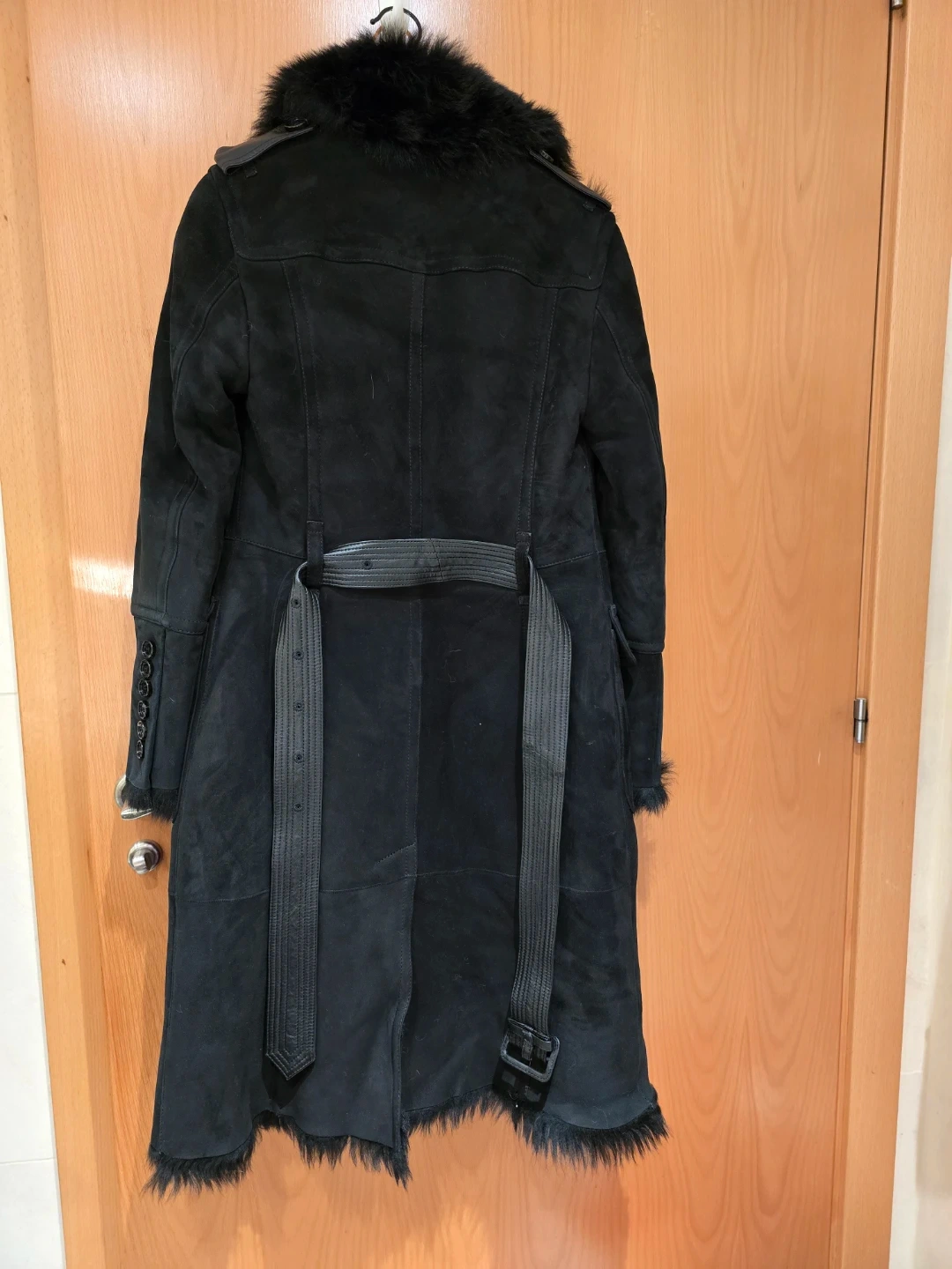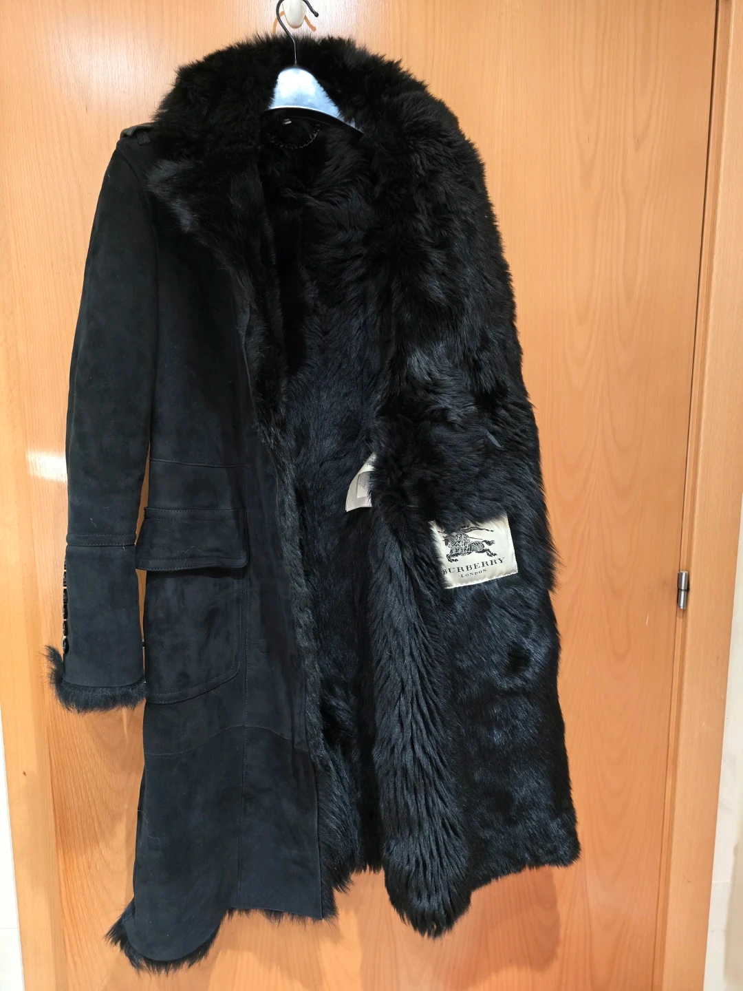 Selling a beautiful black shearling coat from Burberry! It's in great condition and features a luxurious fur collar and lining. Perfect for staying warm and stylish during the colder months.