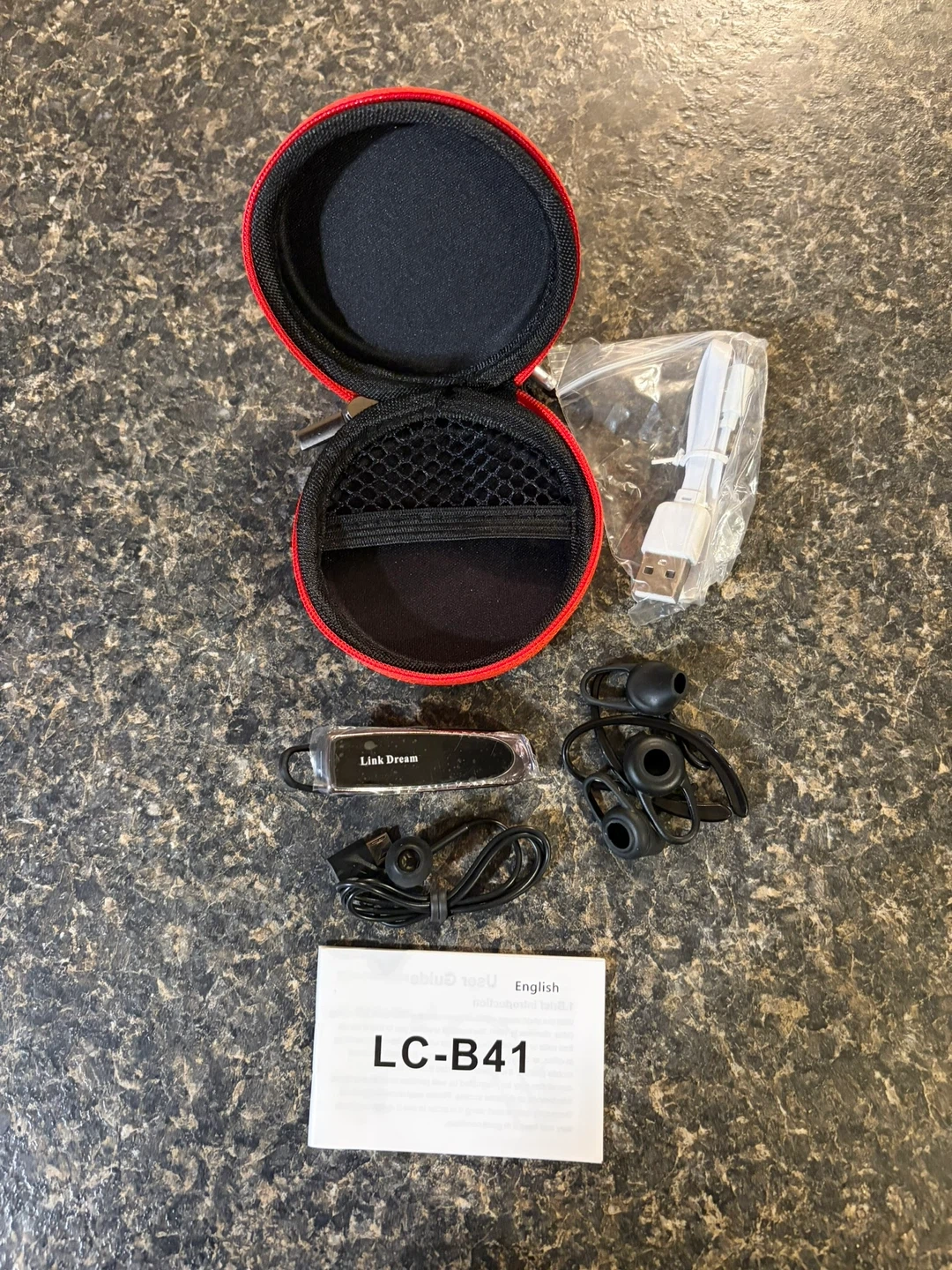 Never used. Bluetooth ear piece headset to pair with your cell phone for calls. Comes with ear piece, charging cable, audio cable, 3 extra rubber inserts for the ear piece & a case.