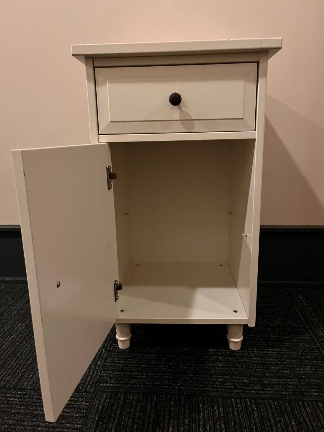 White Nightstand with Drawer and Cabinet