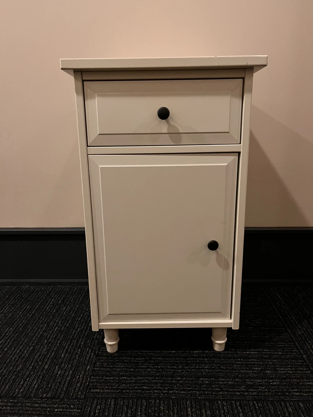 White Nightstand with Drawer and Cabinet