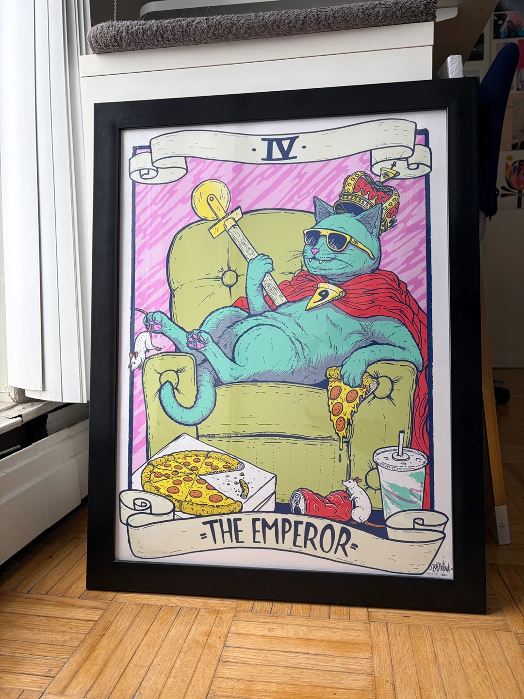 -Print of 'The Emperor' cat tarot card illustration, artist Bob Motown