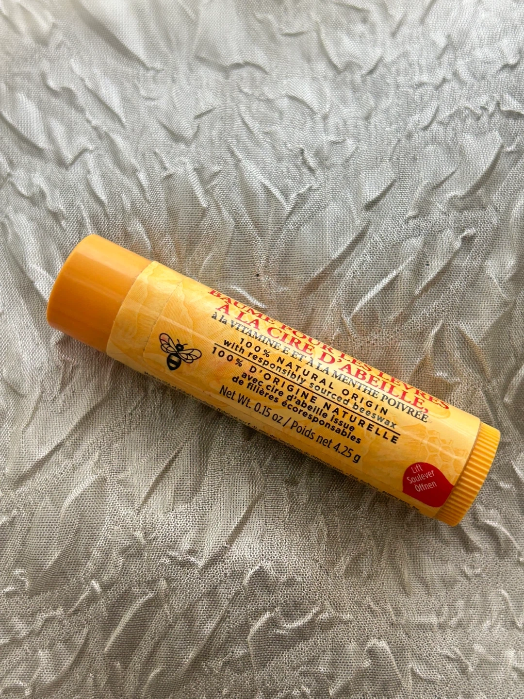 Burt's Bees Beeswax Lip Balm with Vitamin E & Peppermint. Use to soothe and moisturize lips.