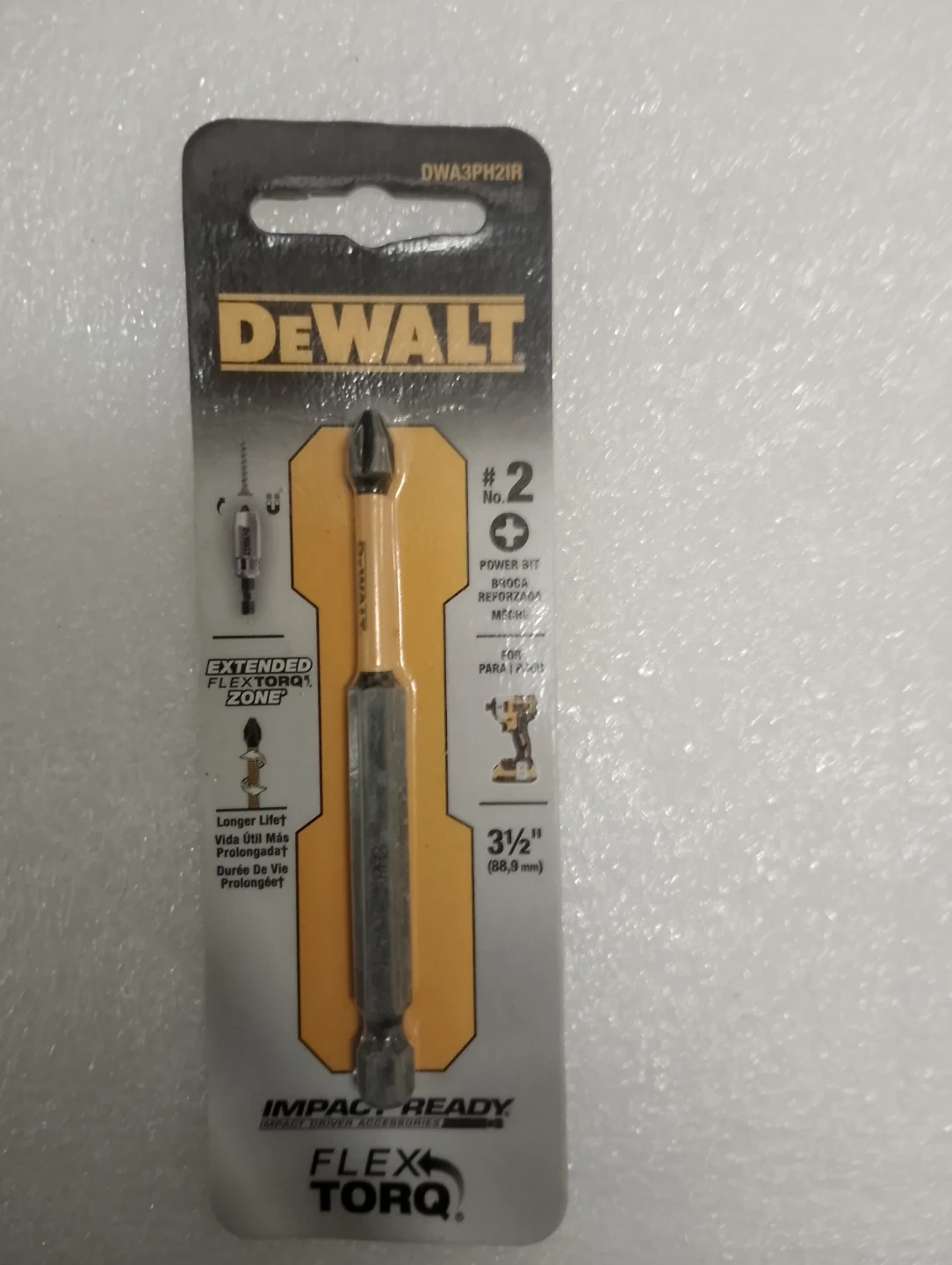 This DeWalt power bit is designed with an extended FlexTorq zone for longer life. It's a #2 Phillips head bit, 3 1/2 inches long, and is impact ready. This bit is suitable for use with impact drivers.