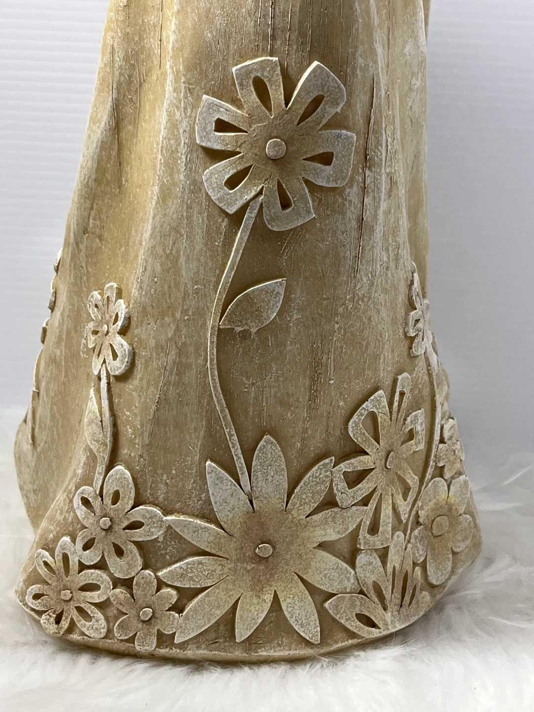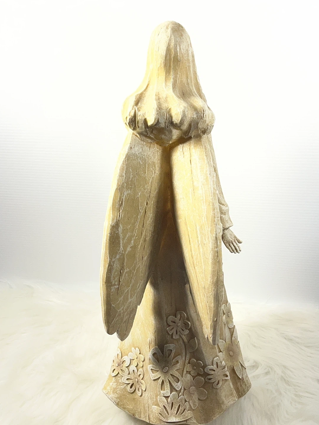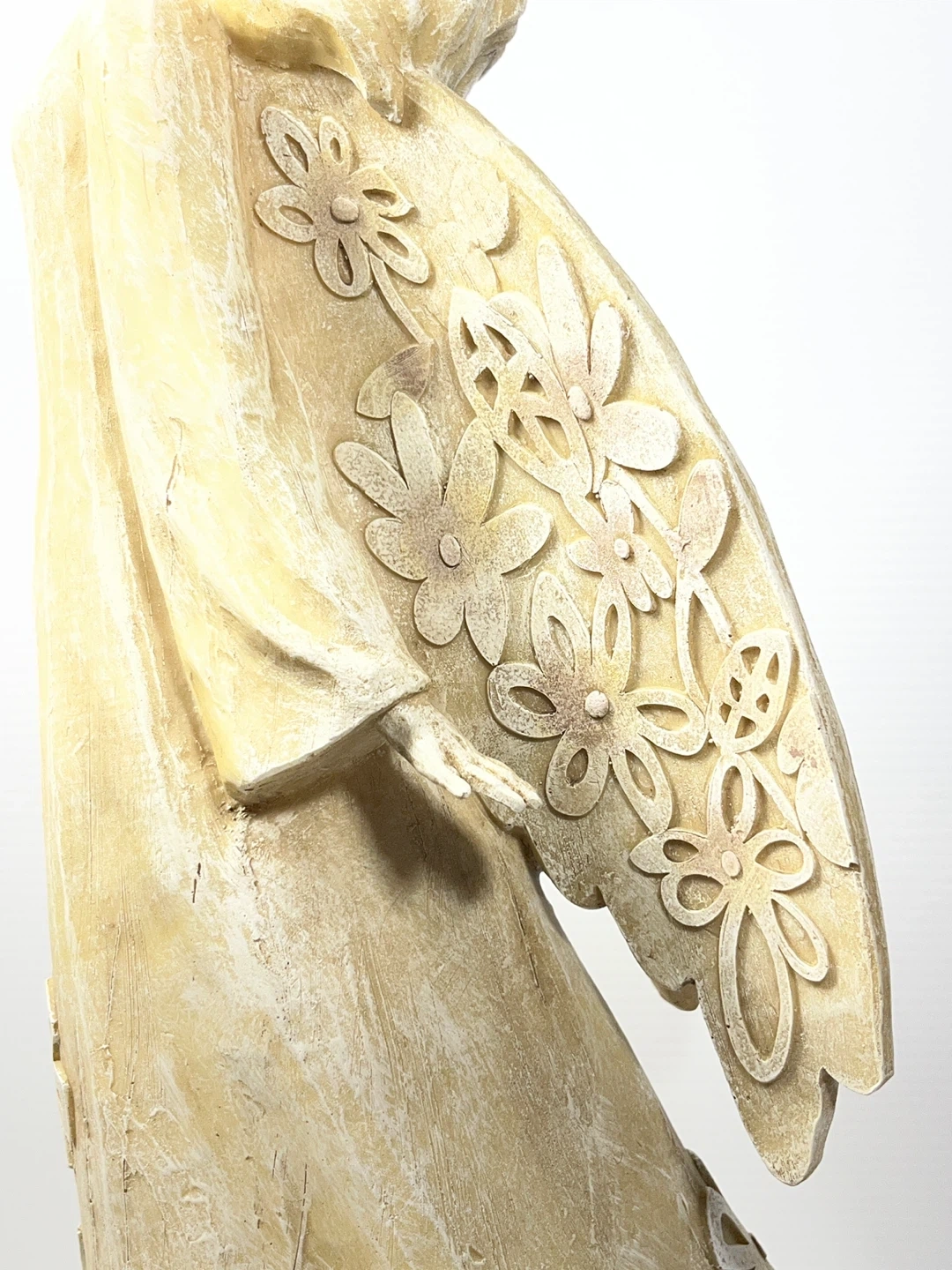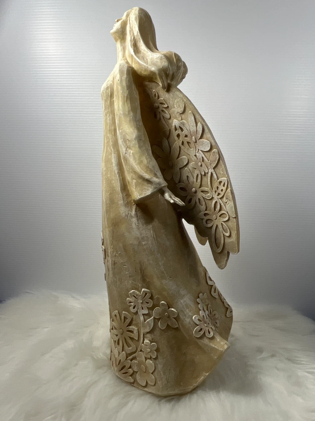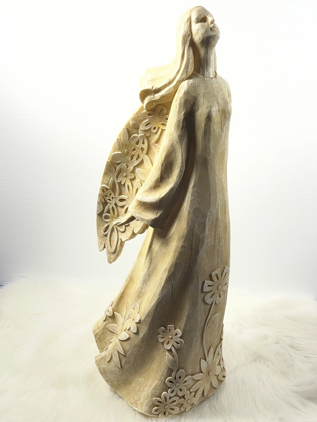 Title: STUNNING 20.5" Large Floral Angel Statue – Carved Wood Style