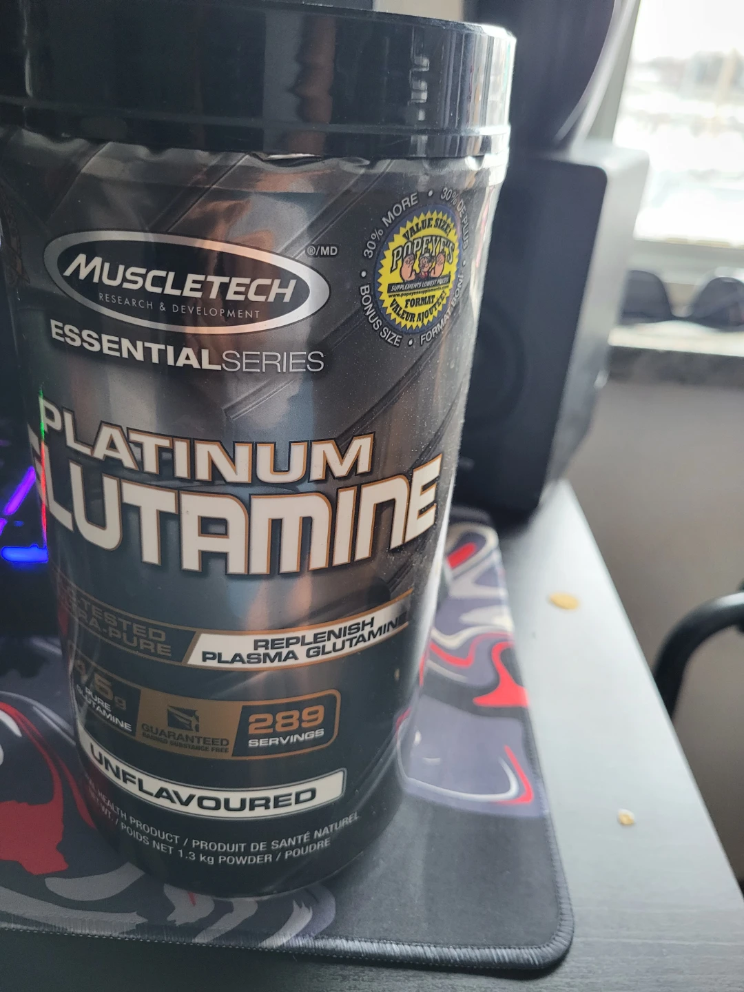 Selling a MuscleTech Platinum Glutamine, unflavoured. It contains 289 servings. Replenish plasma glutamine with this tested pure supplement. Its pretty much 3/4 full. I stopped using it due to putting too much weight. Trying to cut weight now. Its Free for pick up only!
