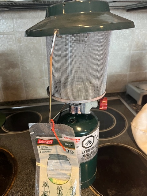 Coleman Propane Lantern with Mesh glass replacement screen (no more broken glass), plus 1 new mantle. Used - Like new. For Sale By: Owner.