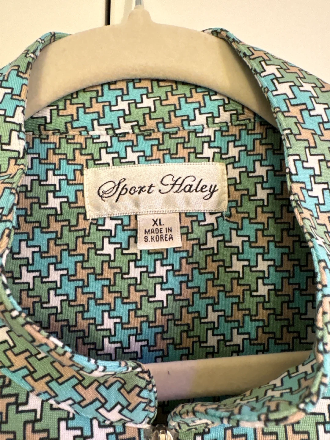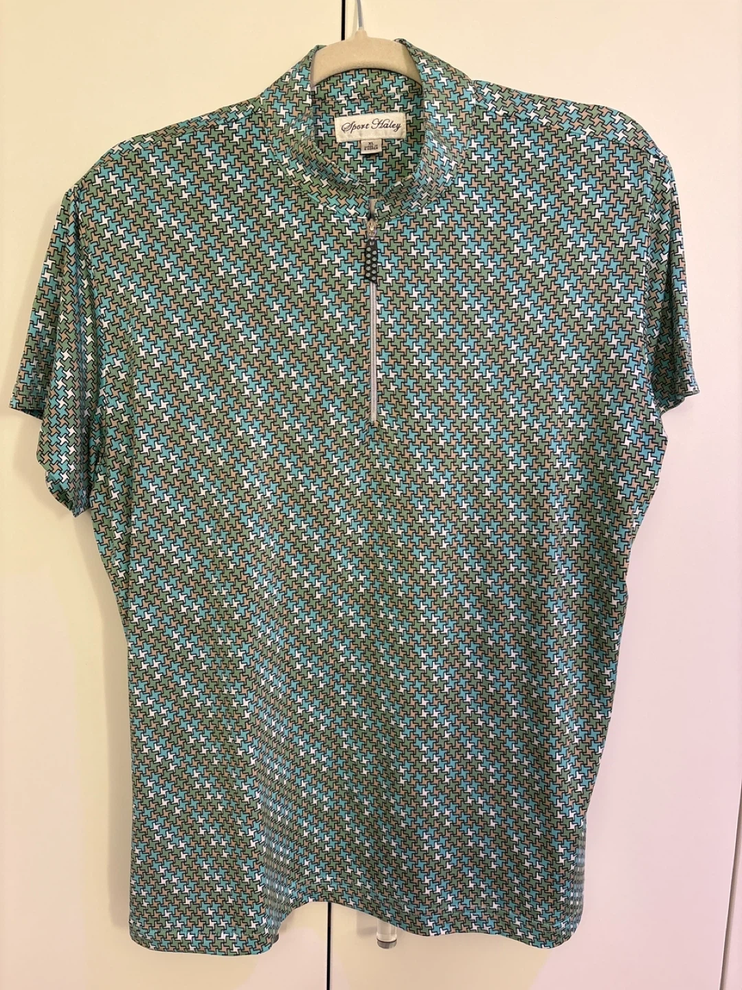 Buy & SellSport Haley Women's Golf Polo Shirt - XLSport Haley Women's Golf Polo Shirt - XL$5Sport Haley women's short sleeve golf polo. It's XL size and made in S.Korea. This top has a fun geometric pattern in teal, green, and tan.ConditionLike newWHERE TO MEETOakridgeView MapSELLERverifiedLeeOakridge80669 reviews0 chats·0 favorites·6 viewsSEND CHAT TO SELLERHi Lee! I’m interested in your listing.Hi Lee! I’m interested in your listing.Get the Karrot app to chatSign In to chat