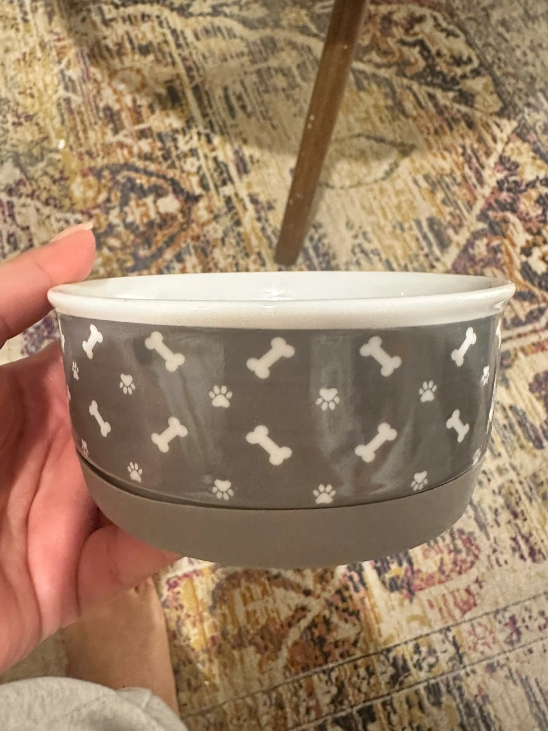 DURABLE MATERIAL & EASY TO CLEAN: Pet bowl is made of porcelain ceramic with a silicone ring to keep from sliding on the floor; Conveniently dishwasher safe so it can be easily cleaned; no fuss