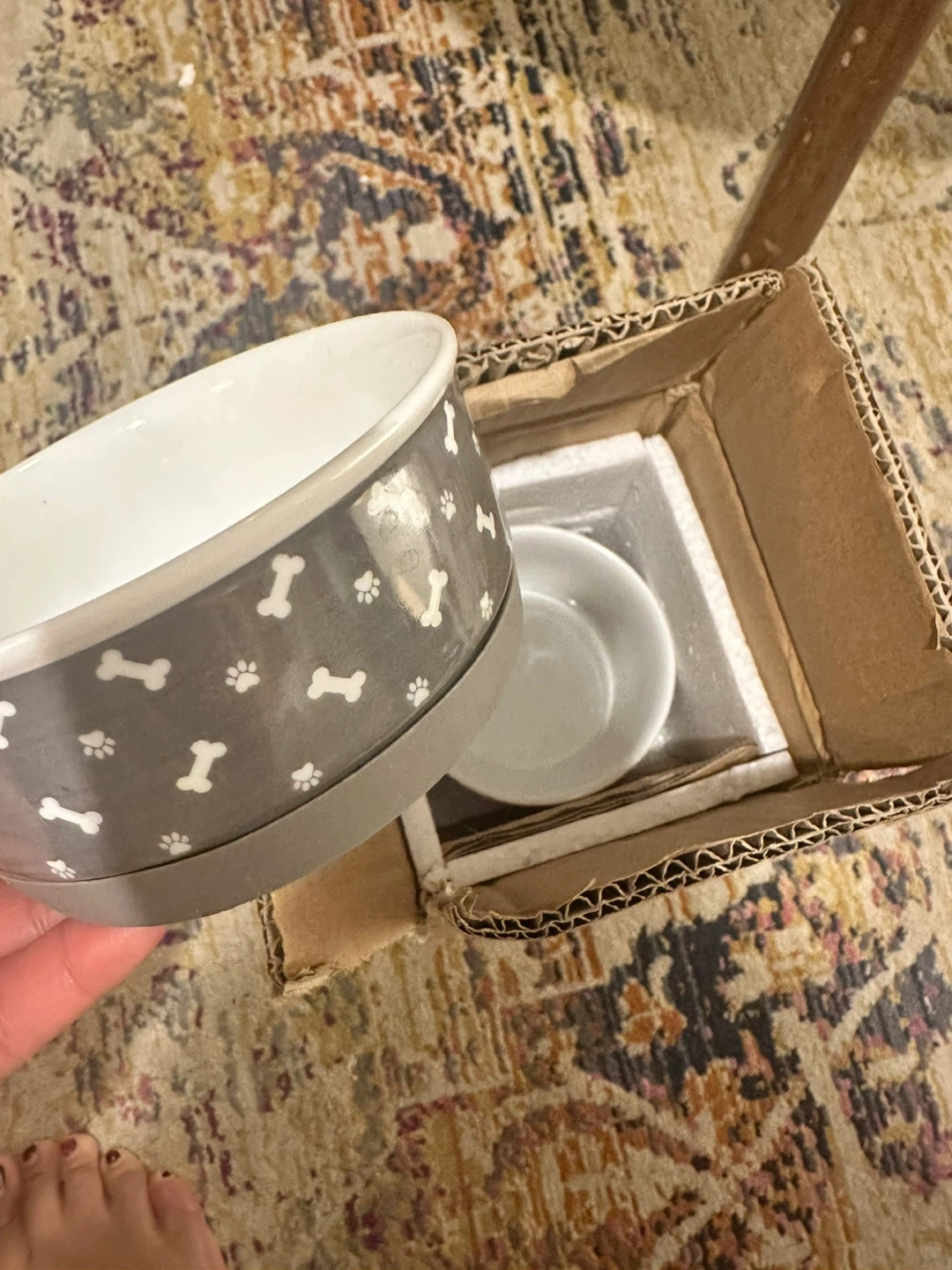 FULL DINNER SET: Set of 2 medium pet bowls, each measures 4” x 2" (D x H) and holds up suitable for small dogs. California Prop 65 compliant and FDA food safe