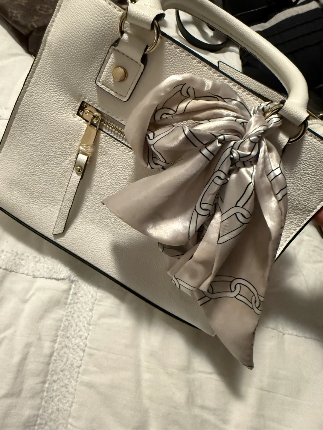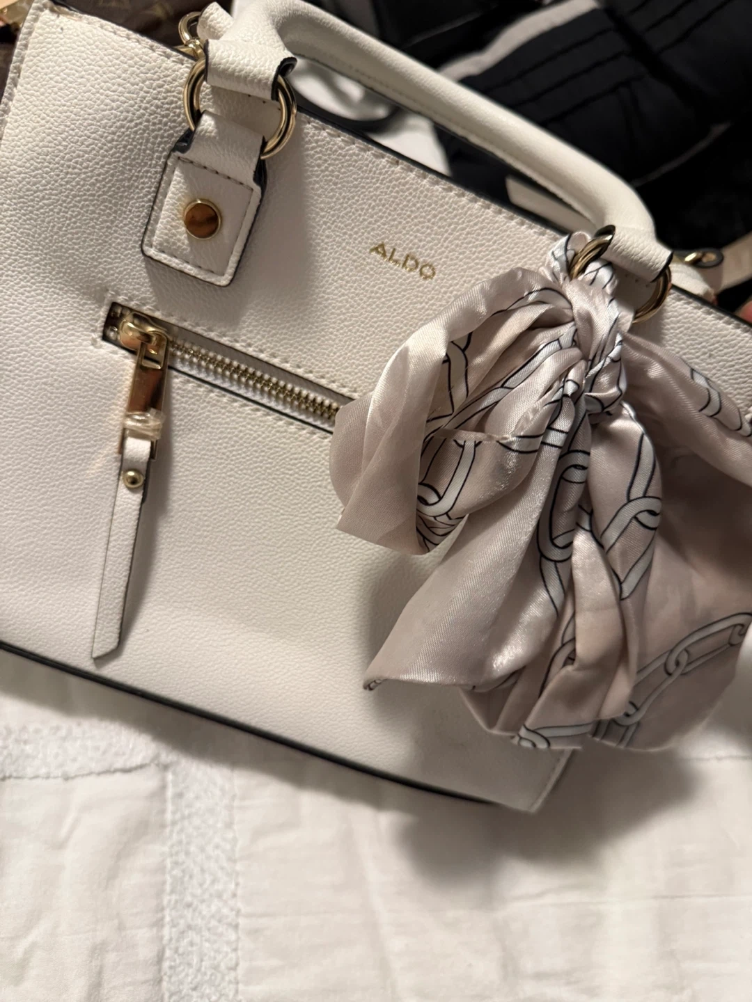 ALDO White Top Handle Satchel Handbag with Scarf