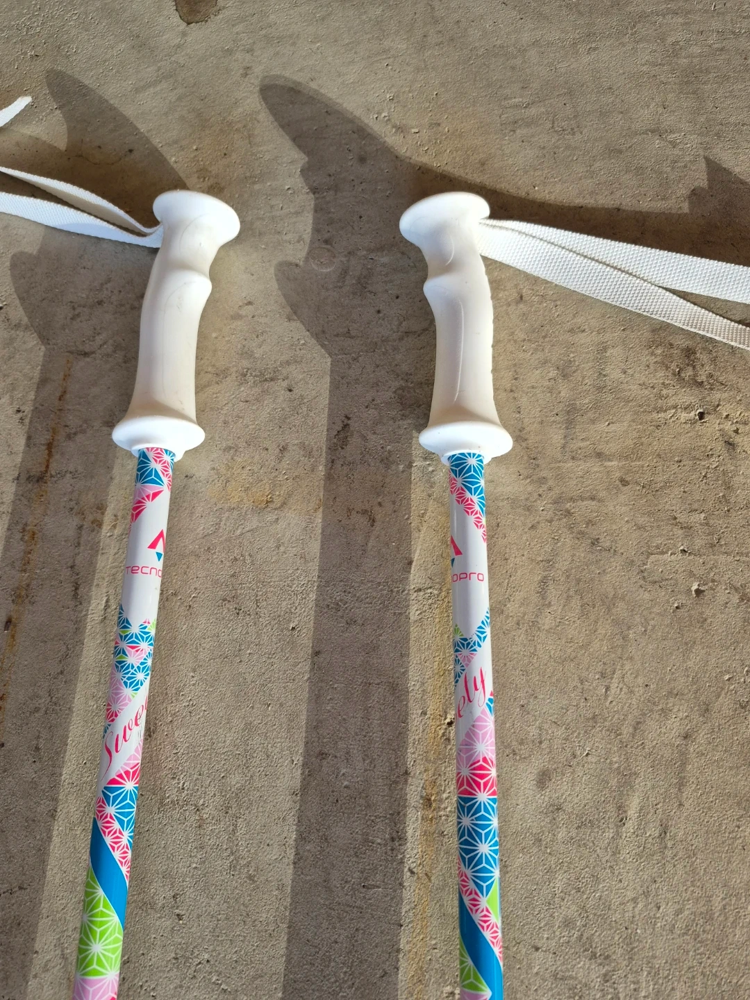Selling a pair of great Tecno Pro ski poles.Made in Italy! They have a colourful design near the handle and are white for the rest of the pole. Great for hitting the slopes! Length: 90cm. Save and pick them up today.