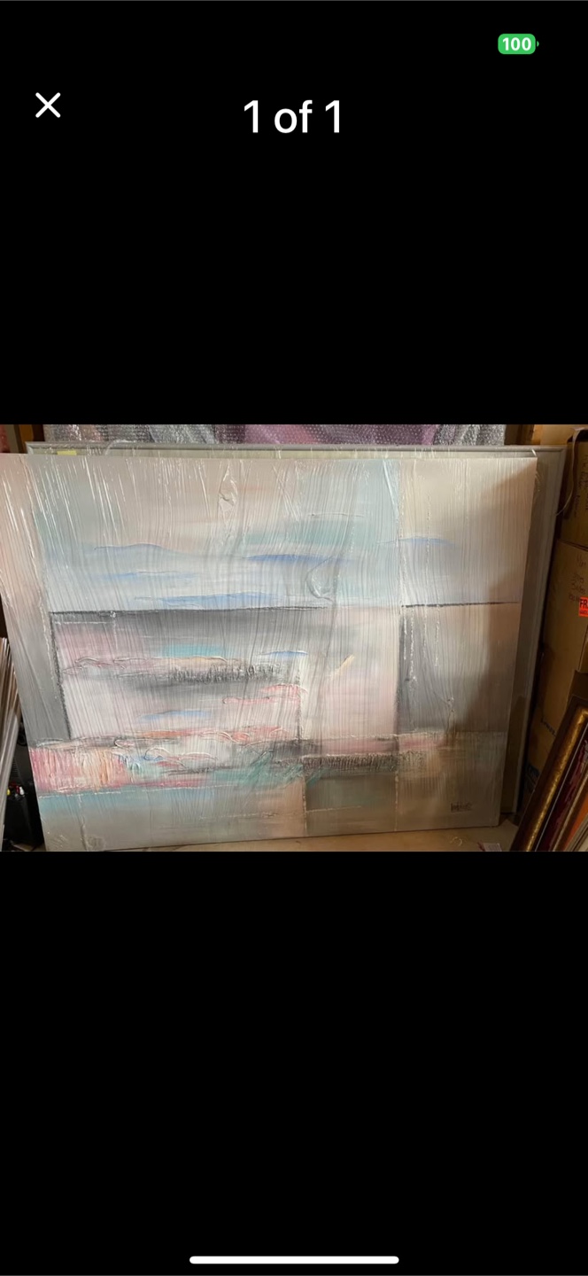 Beautiful modern art on canvas. Beautiful colours for any decor. 60 W x 48 high x 2 deep. Never used. In perfect condition. Ready to hang.