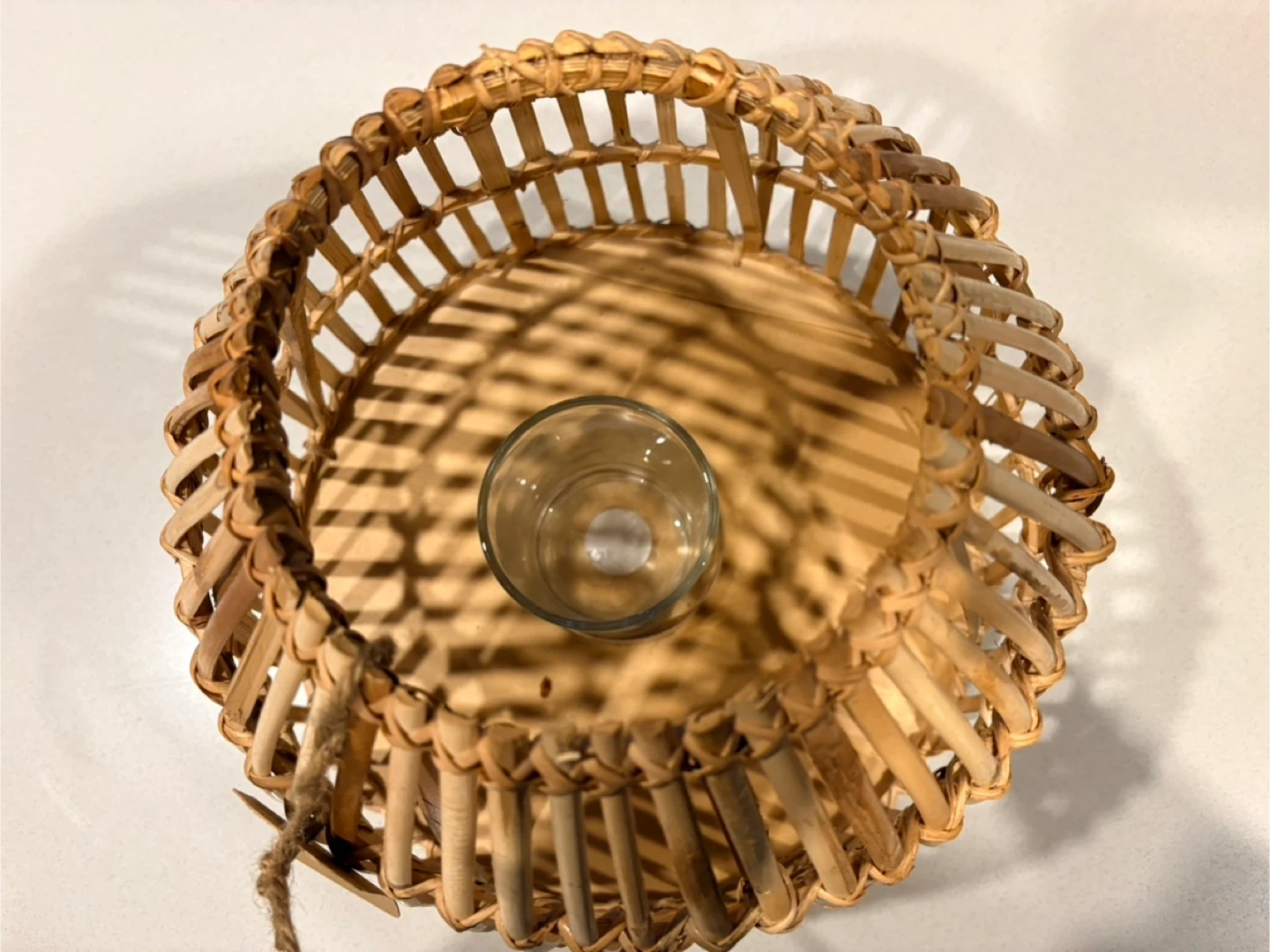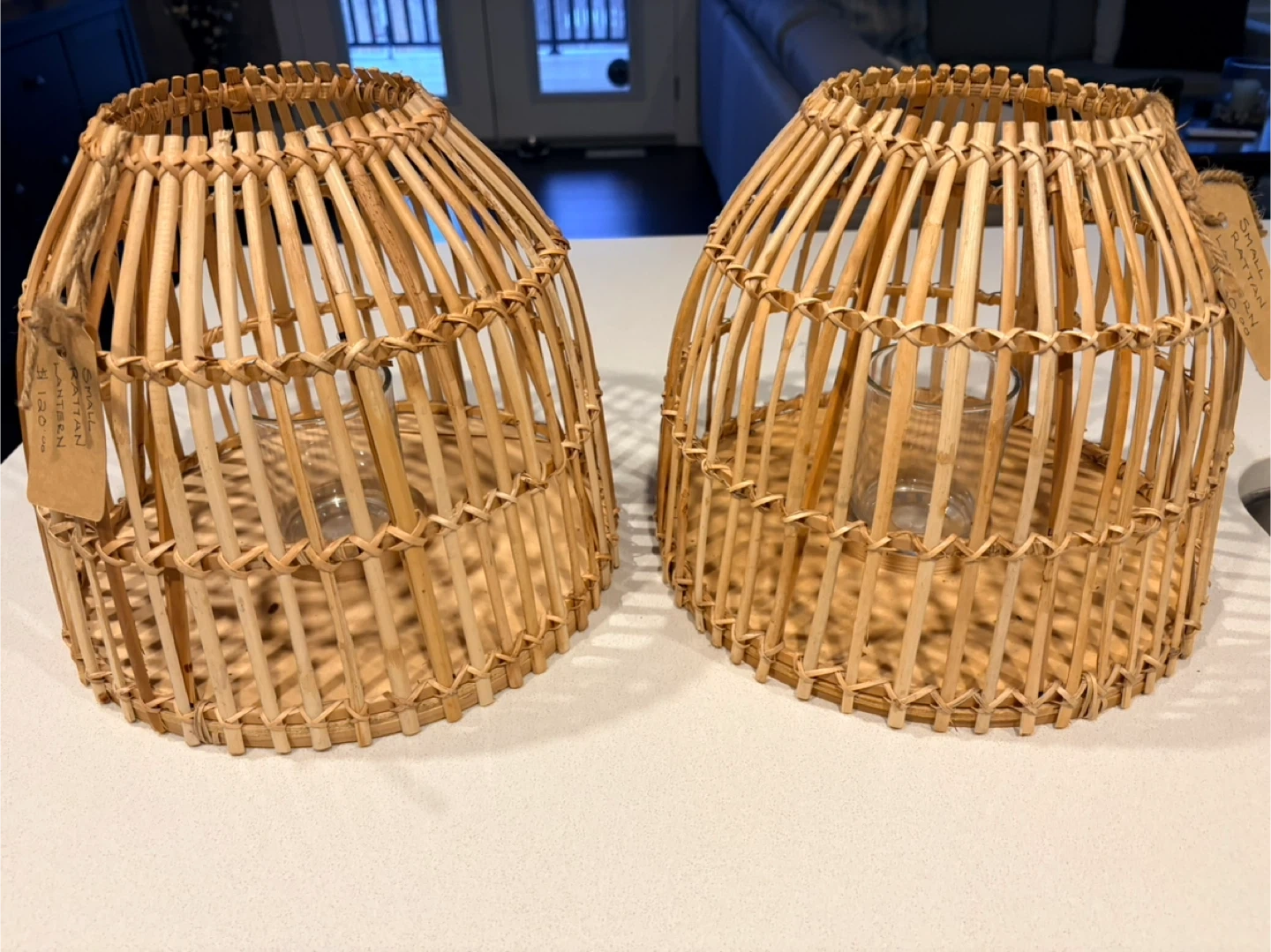 The rattan lanterns comes with a glass insert for candles. It's made from natural woven rattan. This would be great for creating ambiance on a patio or indoors!