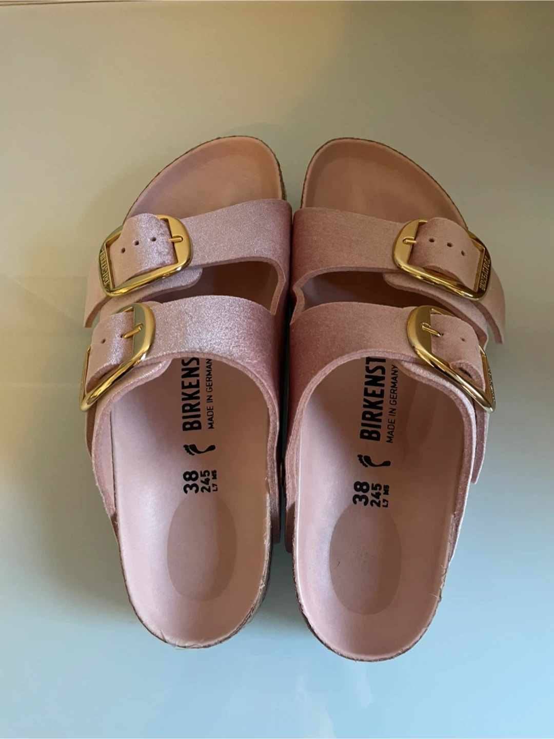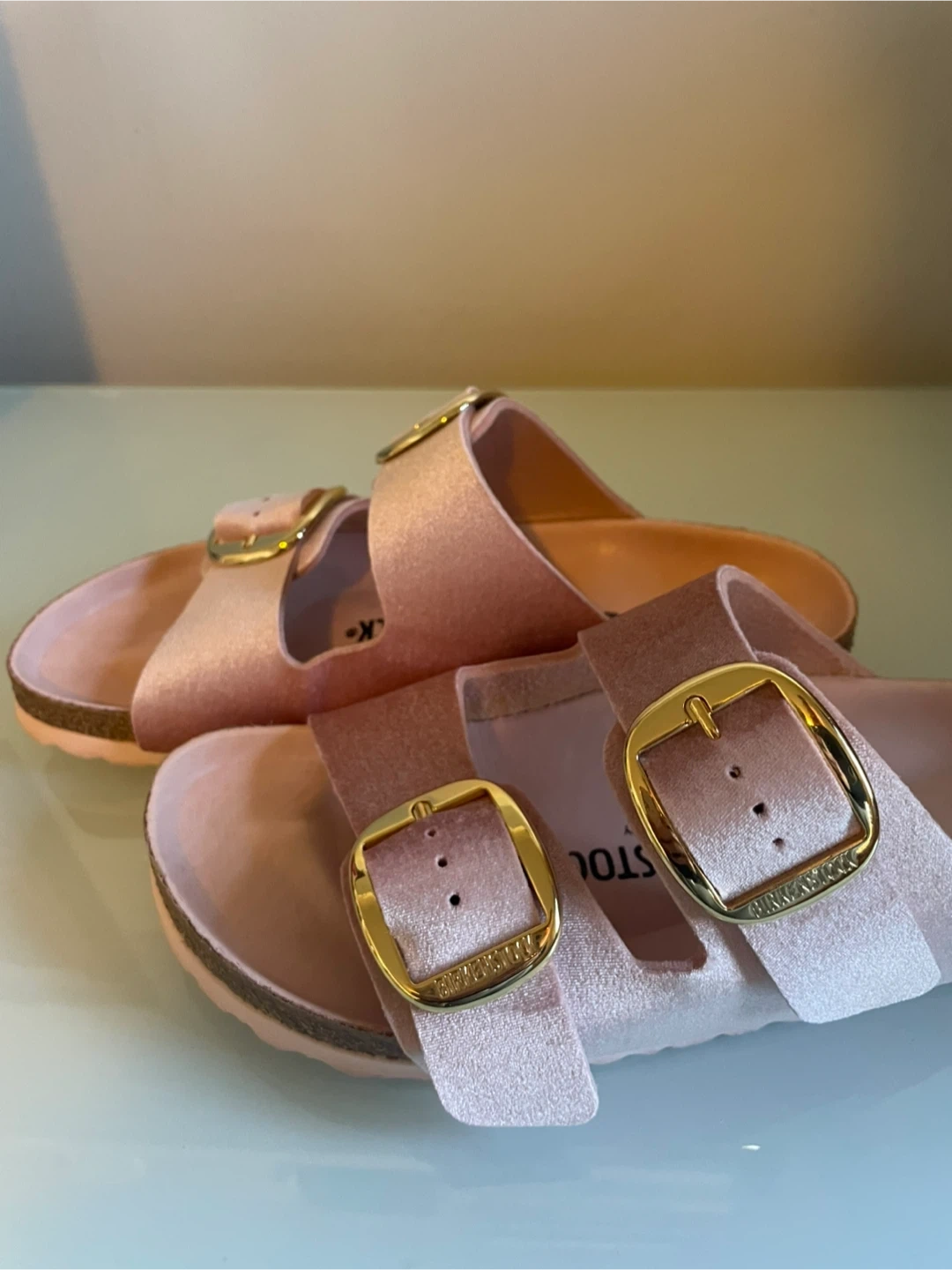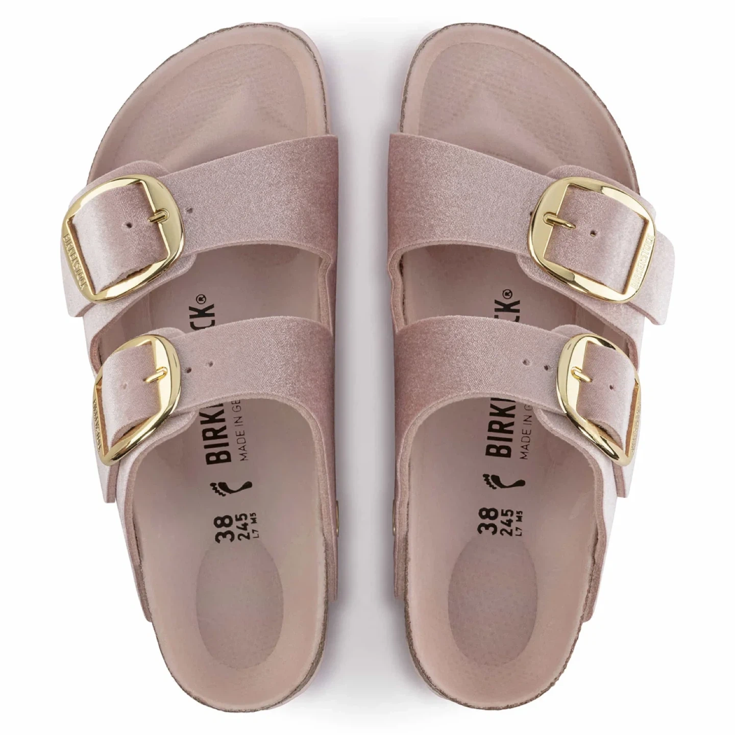 • Classic two strap Birkenstock sandal in limited edition pink velvet fabric