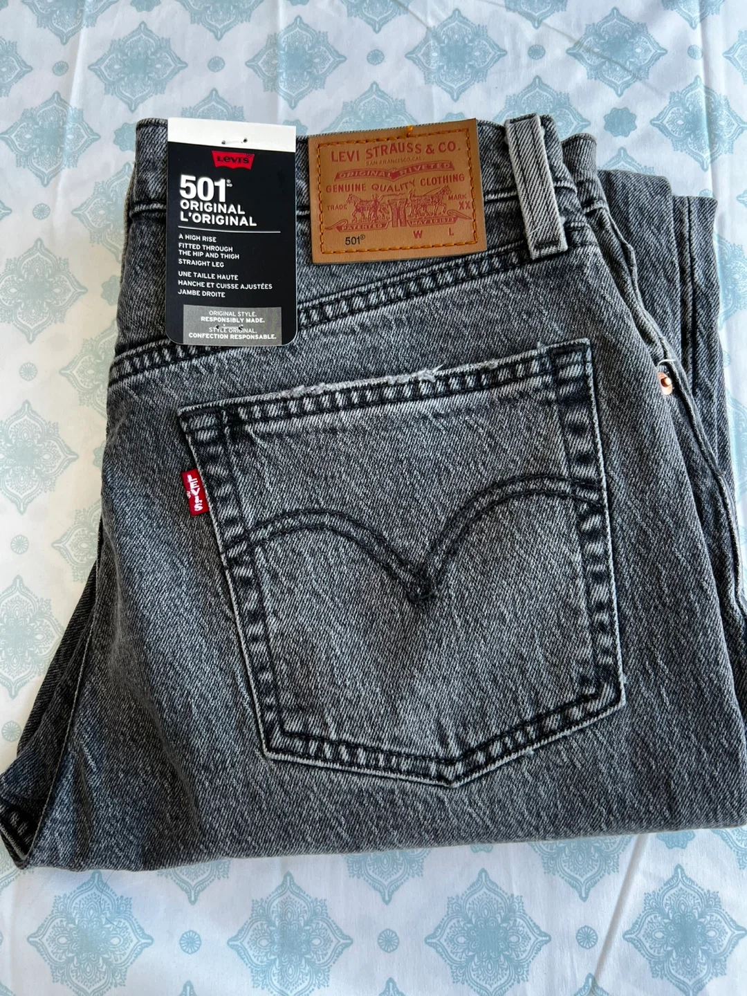 Authentic Levi’s 501 Original jeans in a classic dark grey wash. High-rise, straight-leg fit, made with durable premium denim — a timeless wardrobe staple.