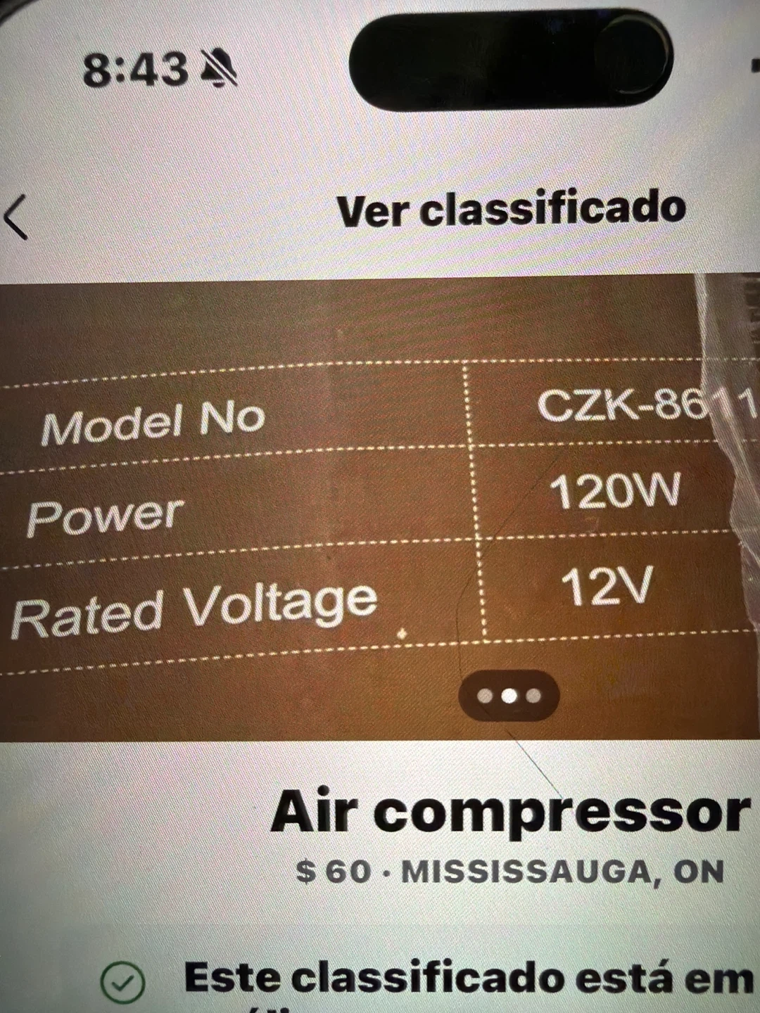 This is a Pumptiva brand air compressor, model CZK-8611. It's a 120W unit with a 12V rated voltage. It's suitable for bicycles and large-volume inflatables. This compressor is useful for quickly inflating tires on vehicles or sporting equipment.