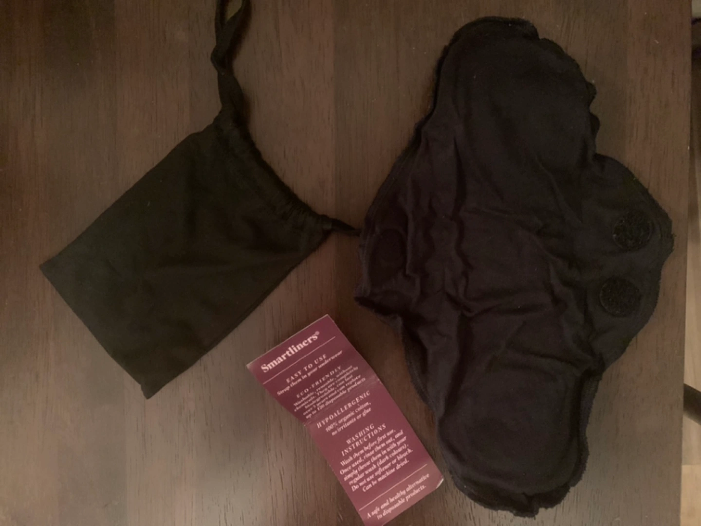 Black reusable menstrual pad never used. Includes a black carrying pouch. Eco-friendly and hypoallergenic. Easy to use. Size medium- large.