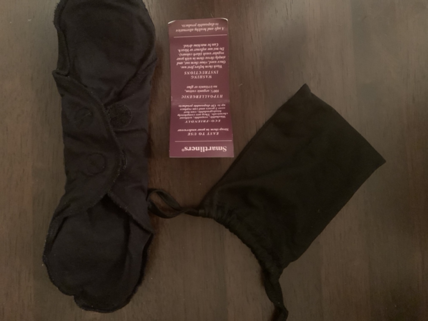 Black reusable menstrual pad never used. Includes a black carrying pouch. Eco-friendly and hypoallergenic. Easy to use. Size medium- large.