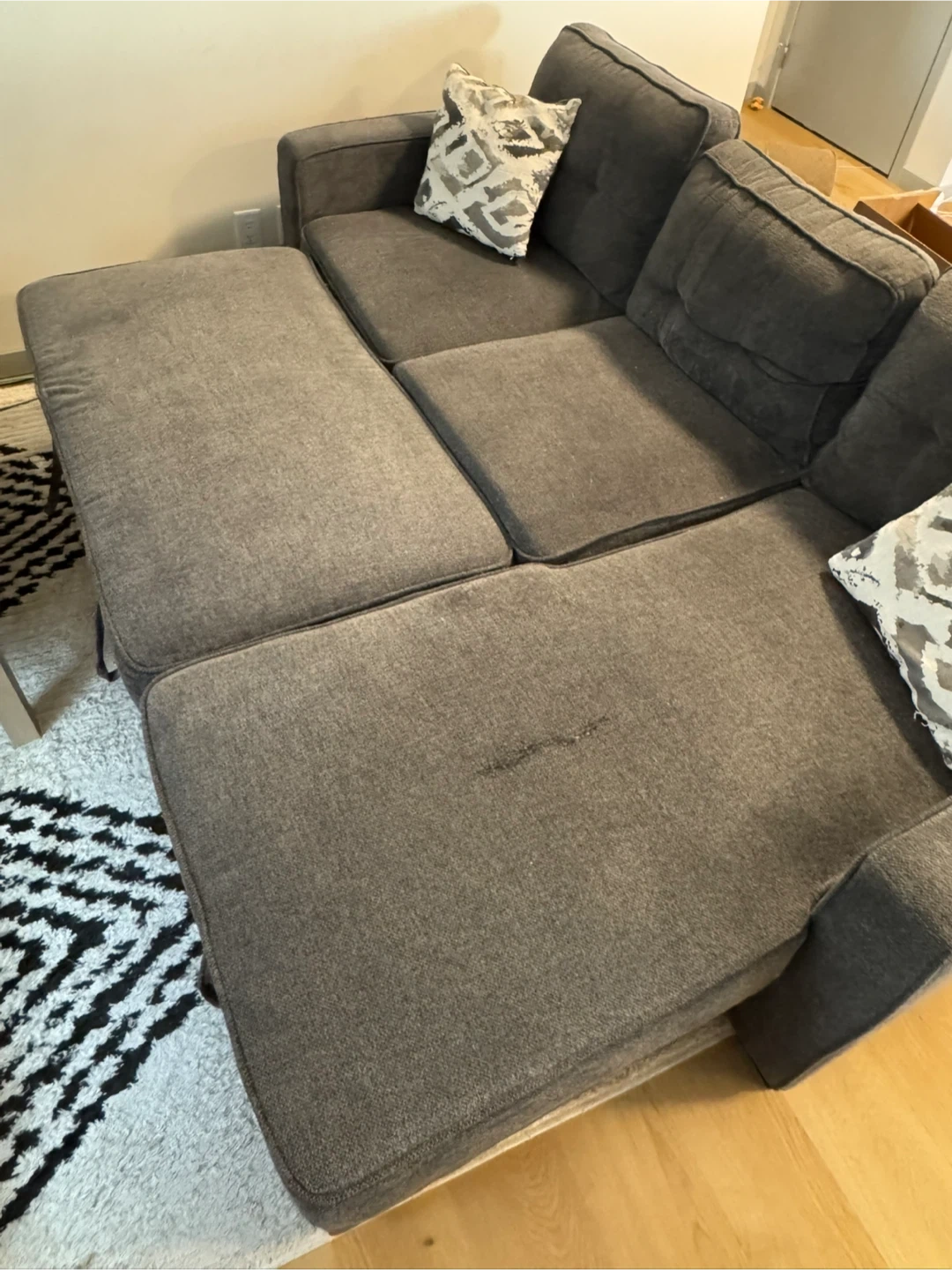 Has small tear in the chaise that has been sewn up.