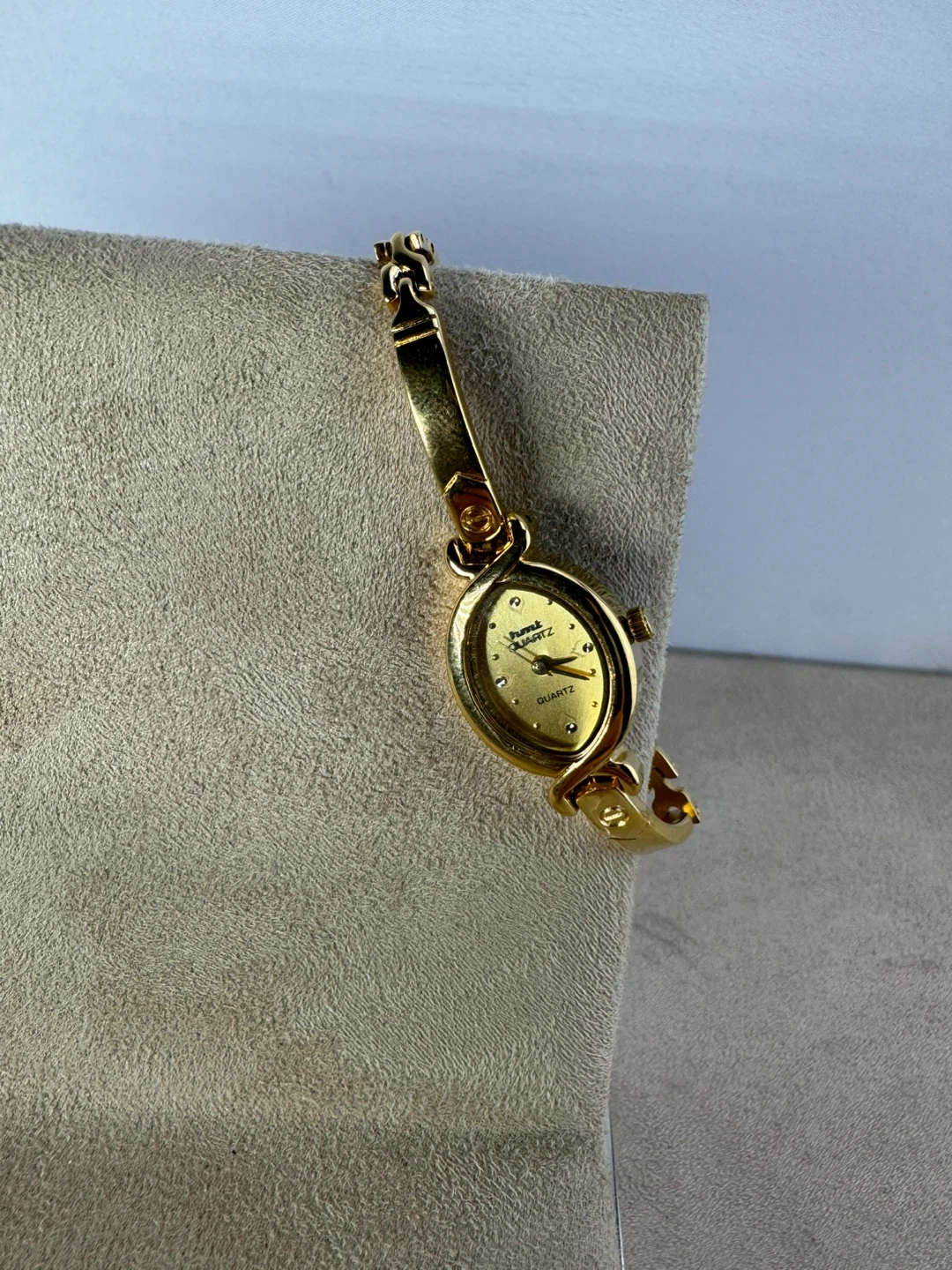 This is a classic gold-tone bracelet watch by Hart. It features a quartz movement for reliable timekeeping. The oval face is adorned with small crystal markers. This watch adds a touch of elegance to any outfit!