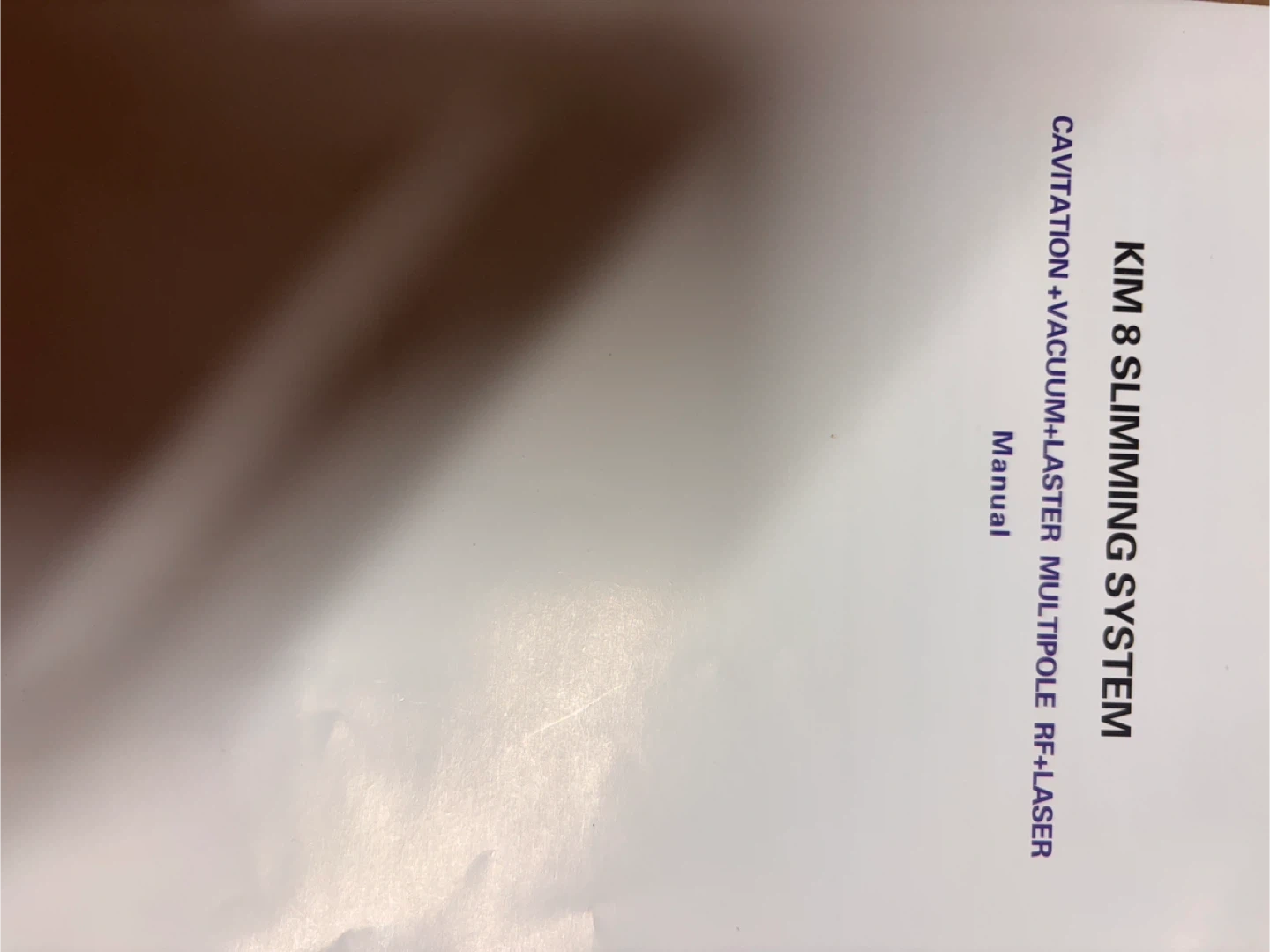 This never used KIM 8 slimming system includes the main unit and multiple accessories. It's designed for cavitation, vacuum, laser, and RF treatments. This system operates on AC 110V/60Hz power. Also includes the gel.