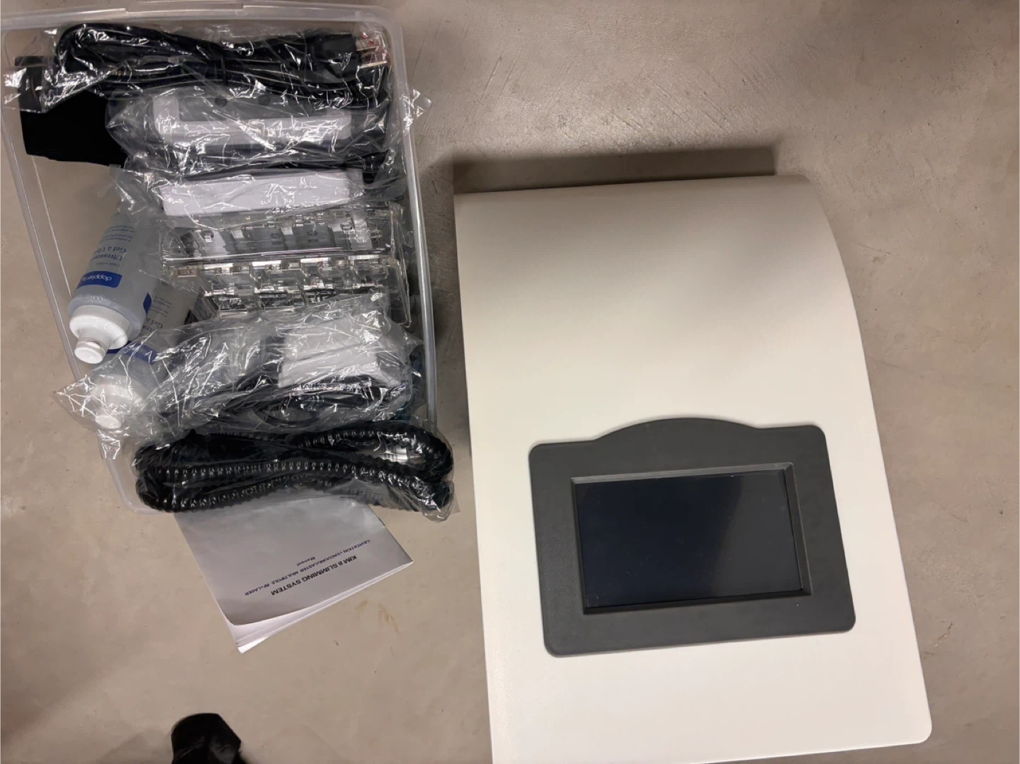 This never used KIM 8 slimming system includes the main unit and multiple accessories. It's designed for cavitation, vacuum, laser, and RF treatments. This system operates on AC 110V/60Hz power. Also includes the gel.
