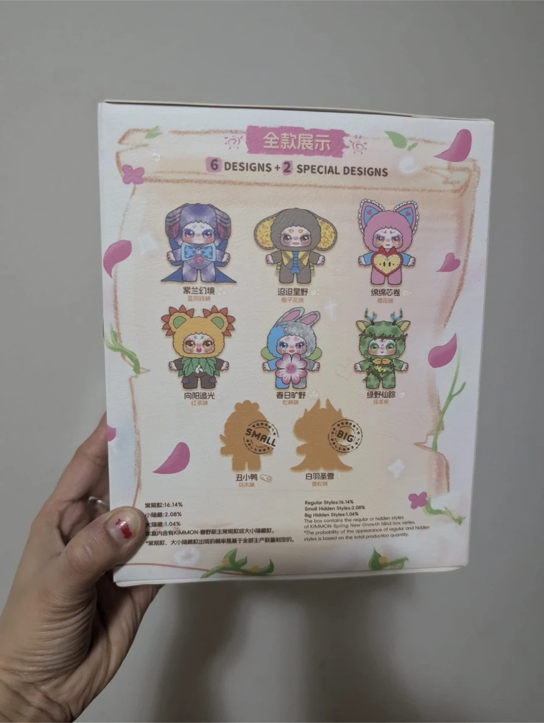This is a Kimmon blind box series. It includes 6 regular designs and 2 special designs. The box displays all the characters available in the series.
