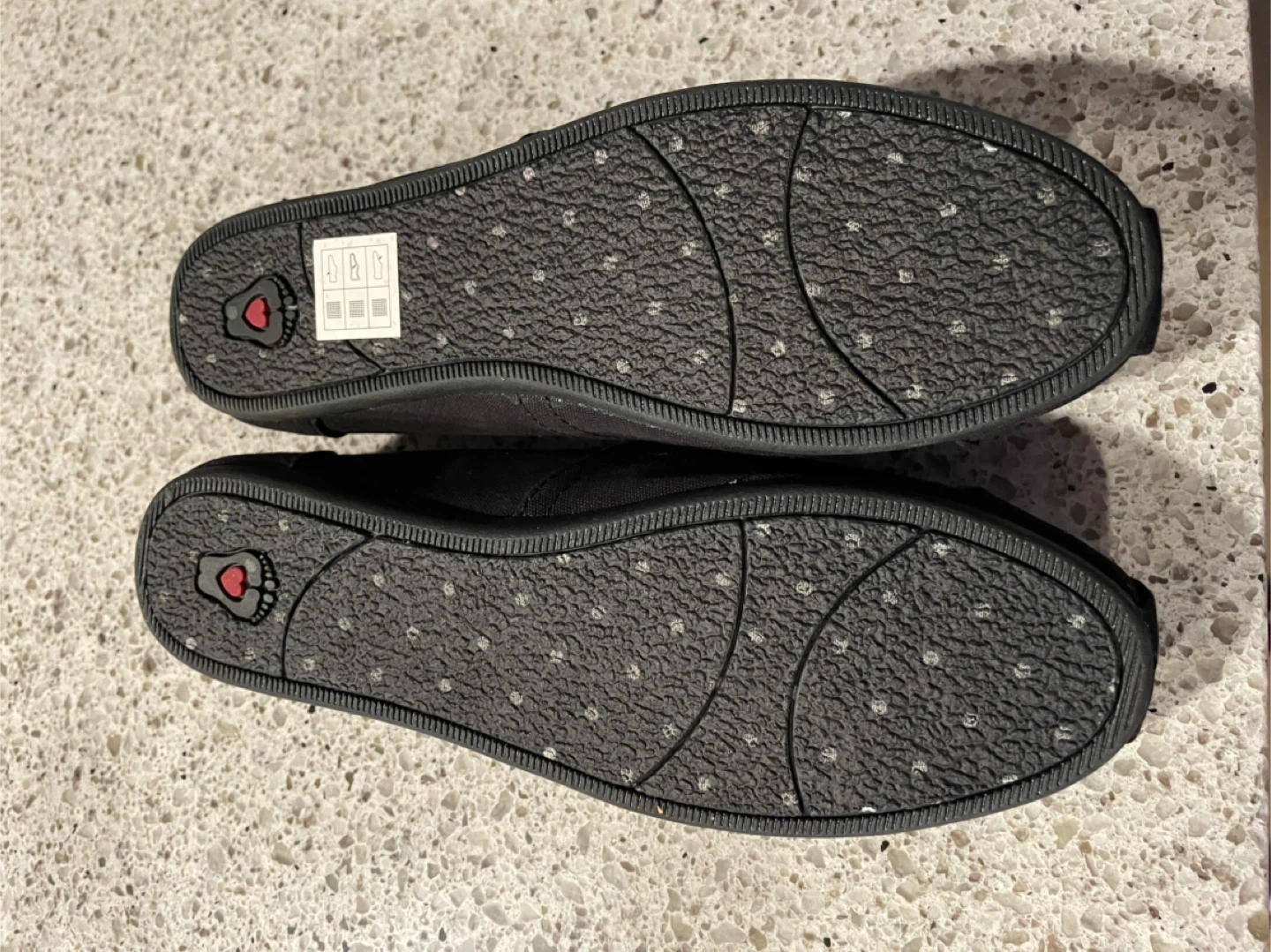 These BOBS by Skechers flats feature a black canvas upper with memory foam insoles for comfort. They have a slip-on style with elastic gore for a snug fit. The rubber outsole provides good traction.