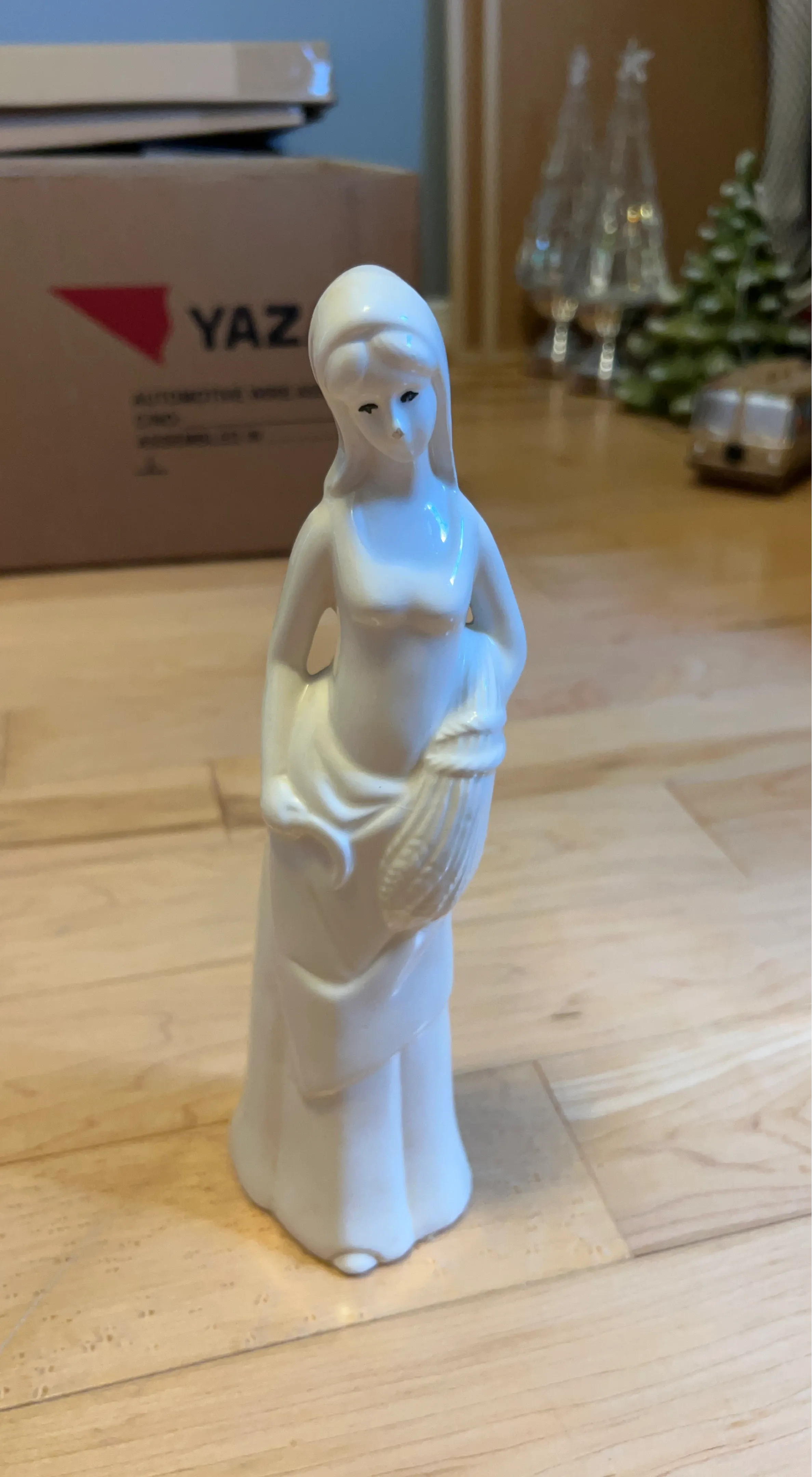 White Ceramic Figurine of a Woman Holding Corn