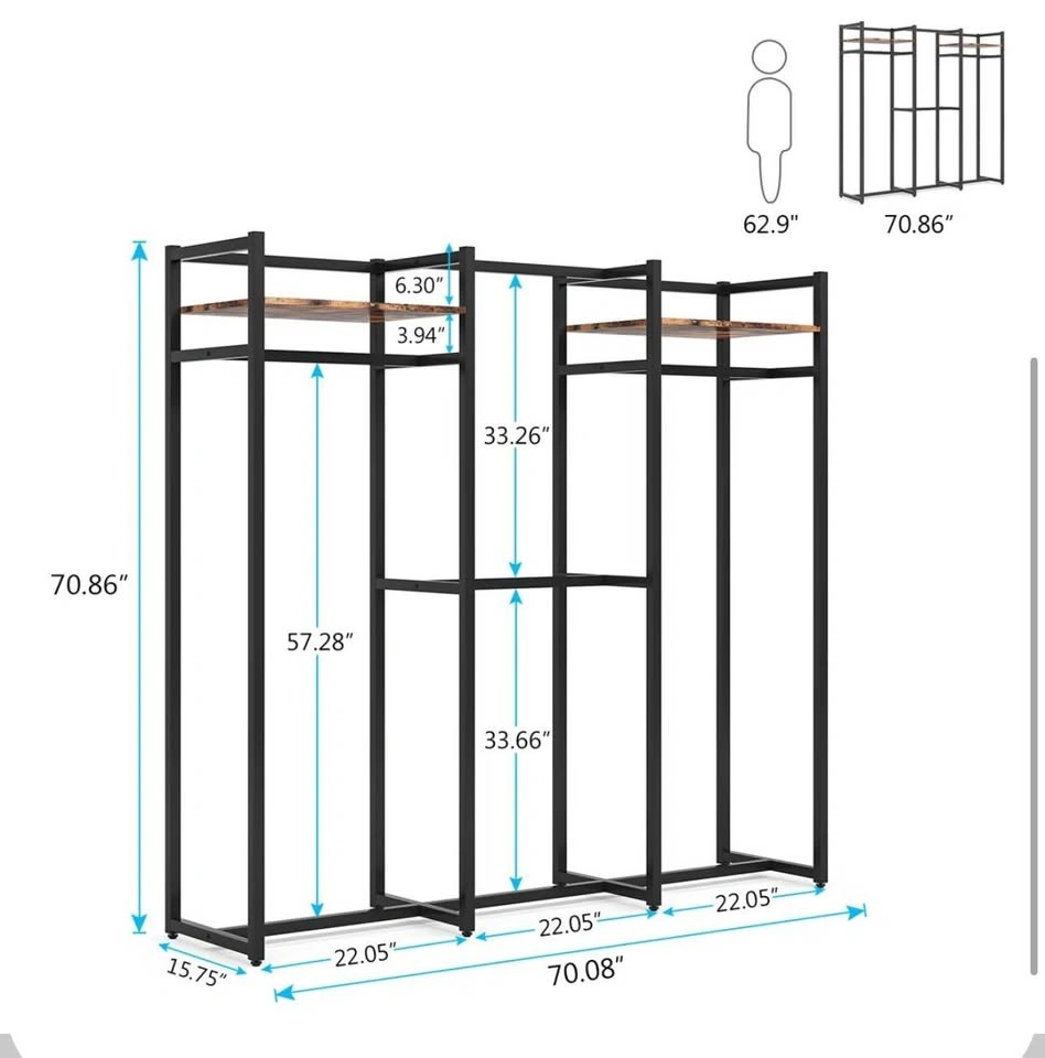 Short on closet space? This 70” heavy-duty metal clothing rack is a sturdy, space-saving solution for organizing clothes, shoes, and accessories. Ideal for apartments, studios, dorms, or even retail/boutique use.