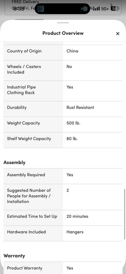 ✔️ 4 hanging rods, each holding up to 50 lbs