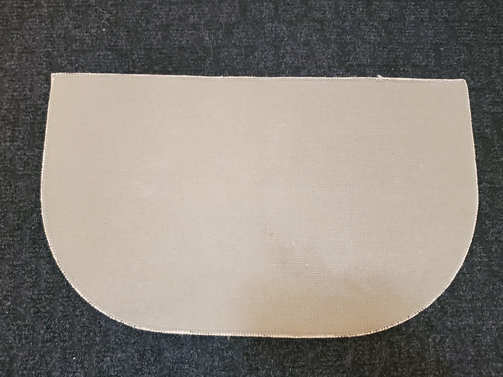 Half Circle rug in great shape. Non-slip backing. It measures 29.5 x 18 inches. The neutral color will match any decor.