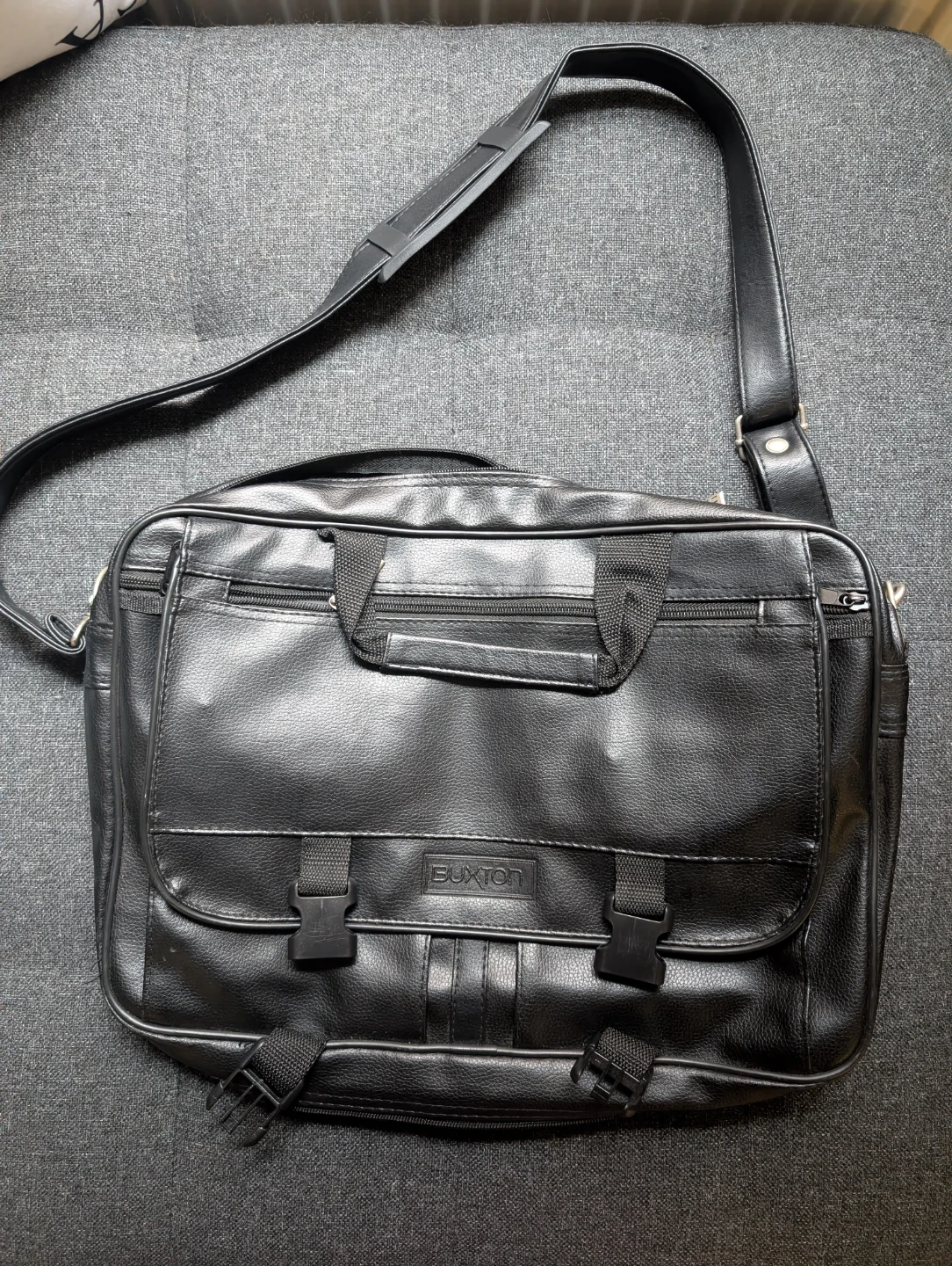Perfect condition leather brief case or laptop bag with a bunch of pockets and adjustable strap