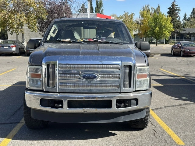 This is a rugged 2008 Ford F250 Super Duty XL 4x4 with 245,000km. It's a reliable workhorse ready for any task, featuring a powerful engine and four-wheel drive, perfect for both on and off-road adventures. This truck shows some signs of wear consistent with its age and use, but it remains mechanically sound. The XL trim offers a straightforward and functional interior. Please review the images to assess the vehicle's condition. If you're looking for a dependable truck that gets the job done, this is it. The entire front end suspension, steering components, front drive shaft, and axle seals have been replaced, and it comes with a 2-year warranty from Advantage Ford Calgary. It has 35”x12.5”x17” MT tires on factory rims and an aftermarket LCD touch screen radio. This is a solid running truck with a clean CarFax report showing no accidents and regular maintenance. All recent work receipts are included. There are no engine error codes. This 2008 F250 SD has a 5.4L 3V engine, manual Dana 60 lockers, factory airbags, traction control, ABS, and tire pressure sensors (TPMS).