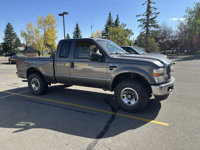 This is a rugged 2008 Ford F250 Super Duty XL 4x4 with 245,000km. It's a reliable workhorse ready for any task, featuring a powerful engine and four-wheel drive, perfect for both on and off-road adventures. This truck shows some signs of wear consistent with its age and use, but it remains mechanically sound. The XL trim offers a straightforward and functional interior. Please review the images to assess the vehicle's condition. If you're looking for a dependable truck that gets the job done, this is it. The entire front end suspension, steering components, front drive shaft, and axle seals have been replaced, and it comes with a 2-year warranty from Advantage Ford Calgary. It has 35”x12.5”x17” MT tires on factory rims and an aftermarket LCD touch screen radio. This is a solid running truck with a clean CarFax report showing no accidents and regular maintenance. All recent work receipts are included. There are no engine error codes. This 2008 F250 SD has a 5.4L 3V engine, manual Dana 60 lockers, factory airbags, traction control, ABS, and tire pressure sensors (TPMS).