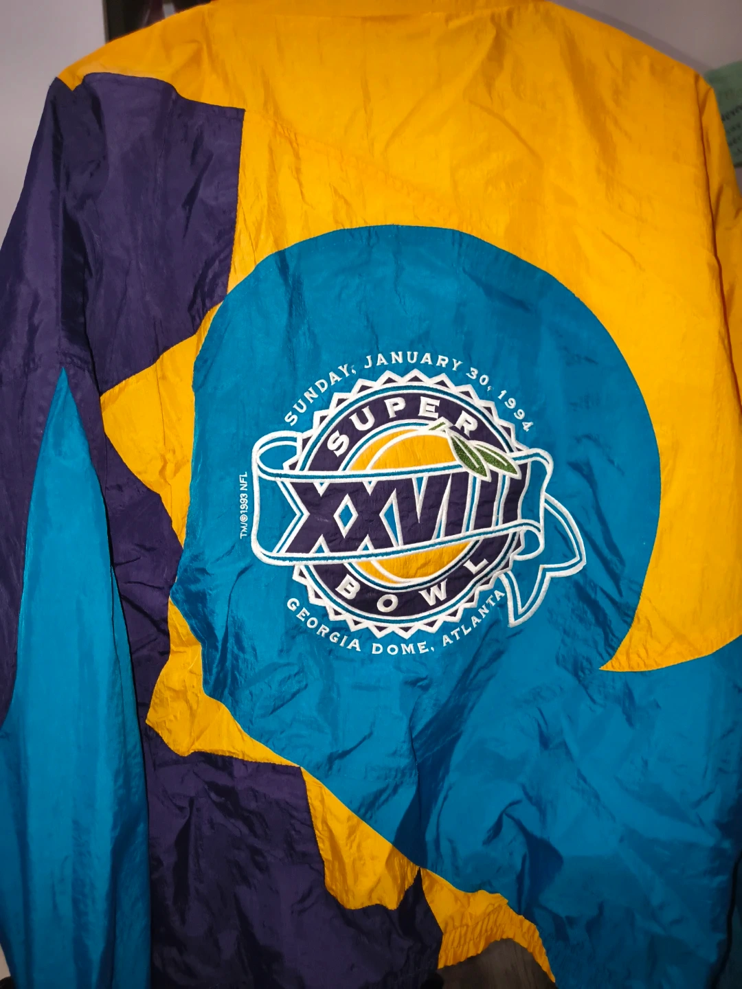 Authentic NFL jacket from Super Bowl XXVIII (Jan 30 1994). Apex One color-block vintage windbreaker size XL. Nice 90s look, patch logo, good condition. Perfect for collectors or retro wear.