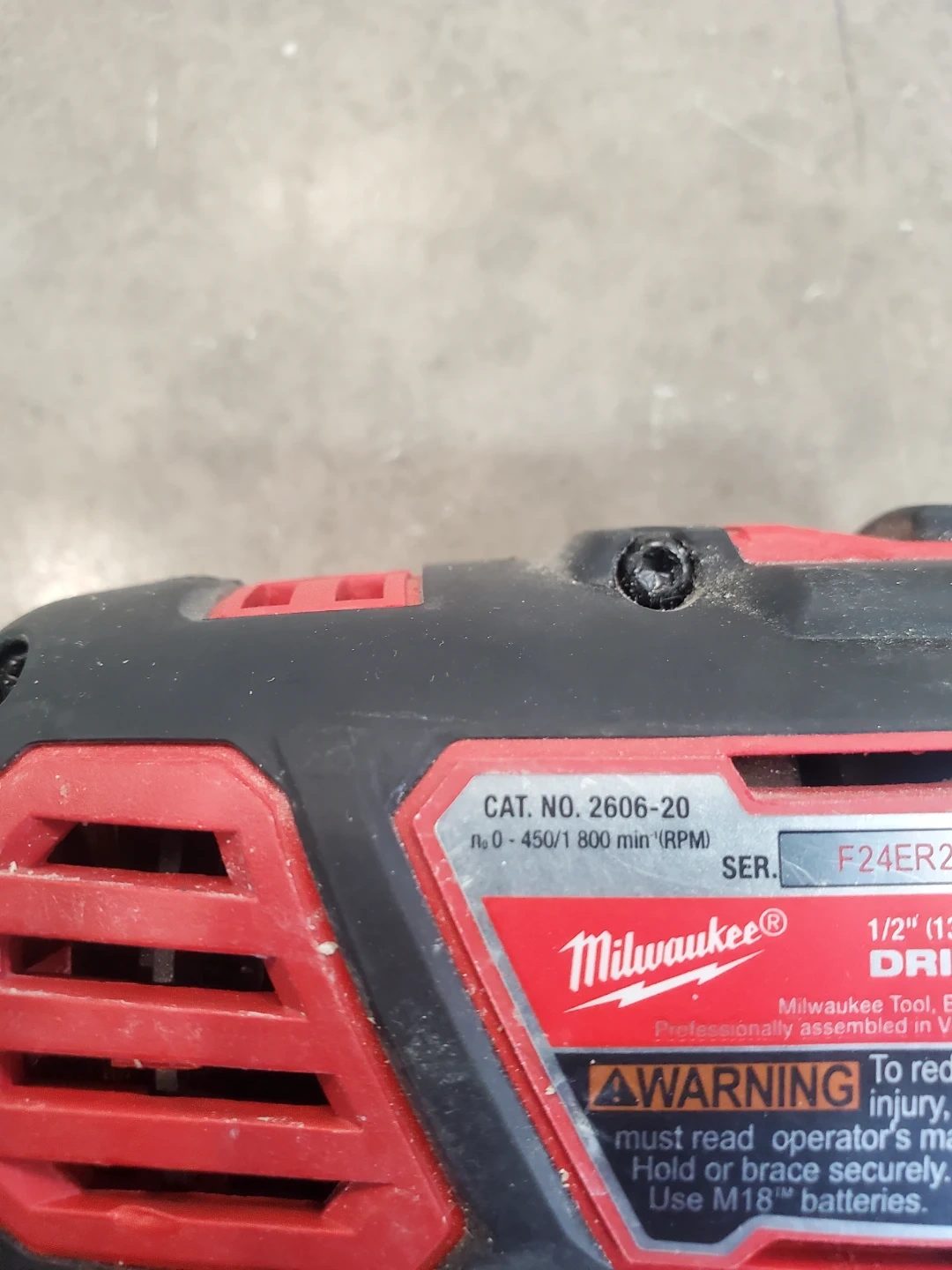 This is a Milwaukee M18 cordless drill/driver. It features variable speed settings up to 450/800 RPM. The chuck size is 1/2 inch. It's perfect for various drilling and fastening tasks around the house or on the job site! No Battery tool only