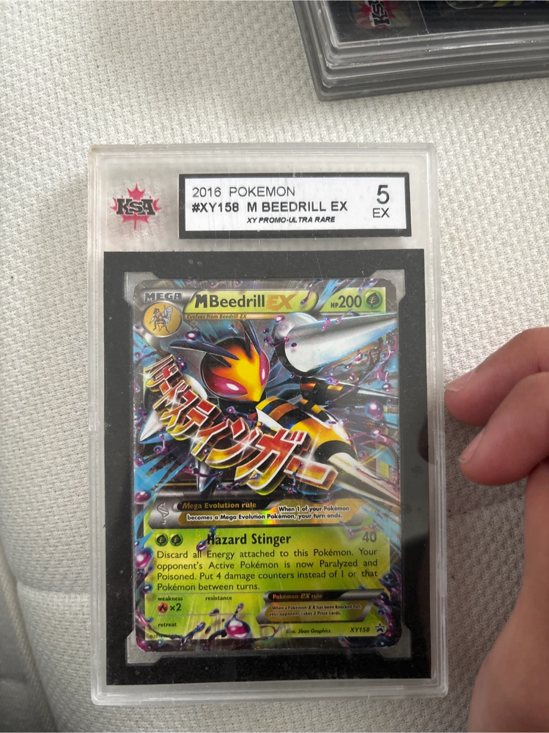 Selling a 2016 Pokemon card, M Beedrill EX #XY158. It's an XY Promo-Ultra Rare card with 200 HP. The card features the Hazard Stinger attack. A great addition to any collection!