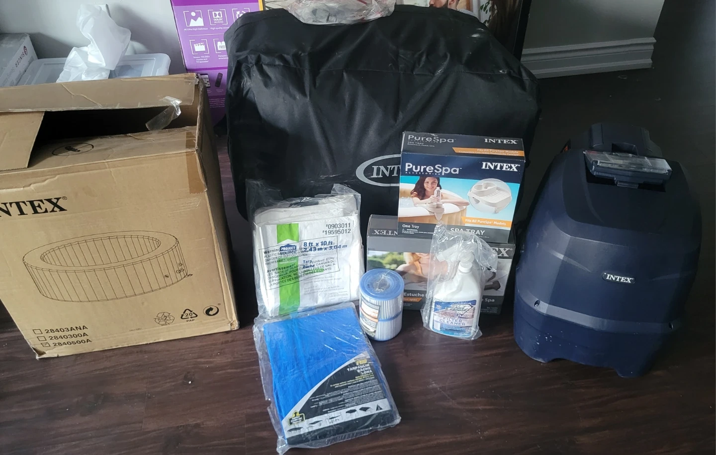 Intex PureSpa used one time only. Filled with water for a show/display, no one ever entered the spa.