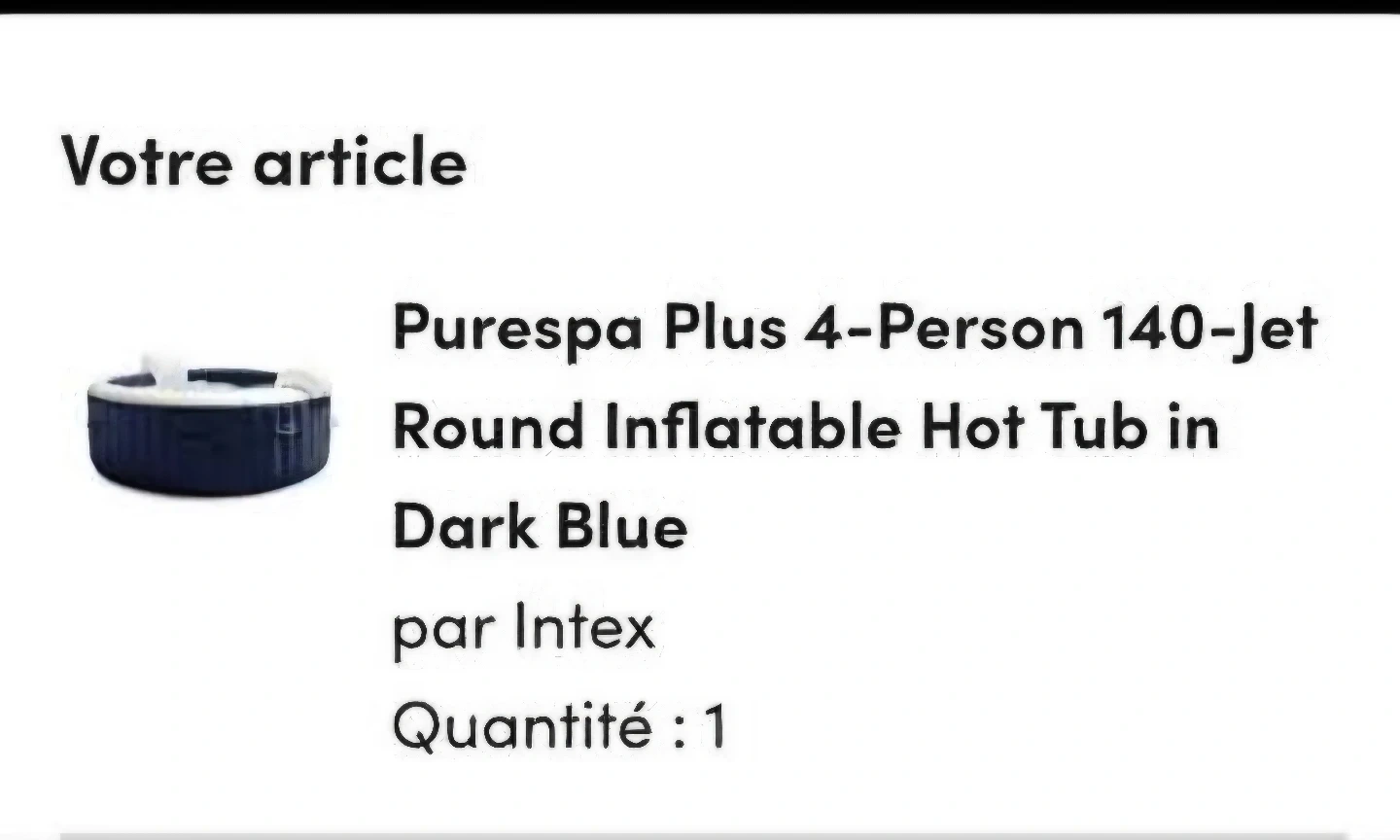 Intex PureSpa used one time only. Filled with water for a show/display, no one ever entered the spa.