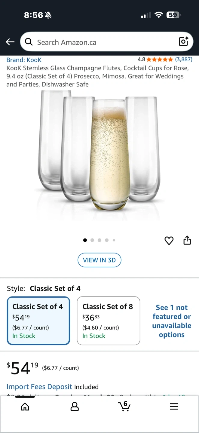 This is a set of six clear, stemless wine glasses. They're made of glass and have a sleek, modern design. These glasses are perfect for serving wine or other beverages at any occasion!