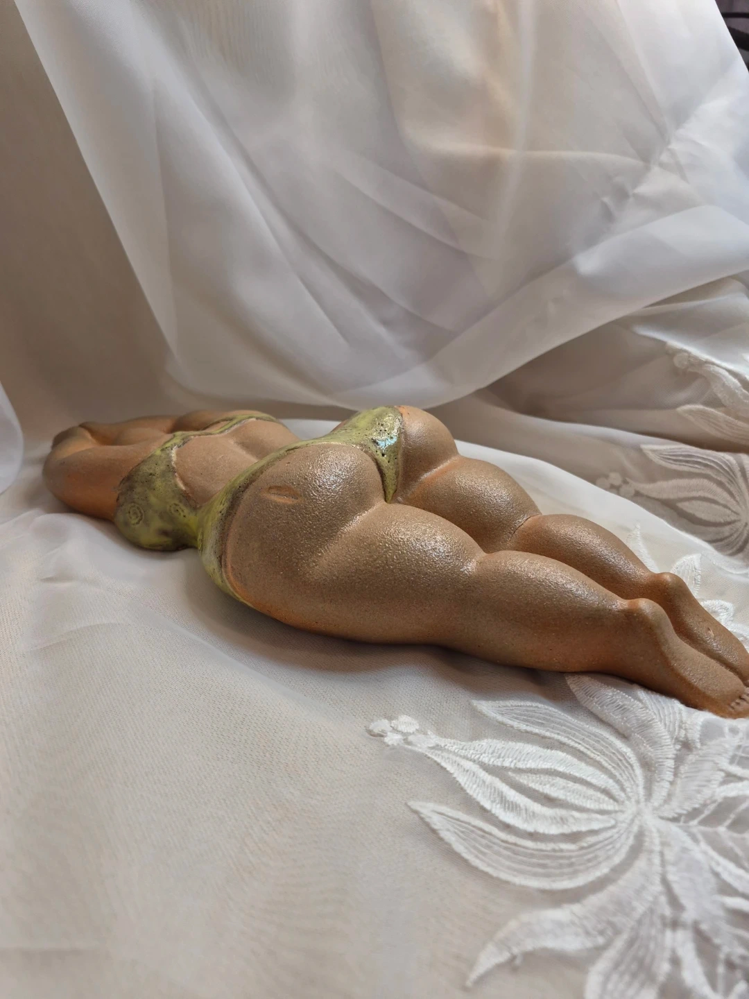Clay Vintage 14" Diving Lady Wall Decor Backside with Green Swimsuit Perfect Pool Decor Exccellent Condition please see all pictures