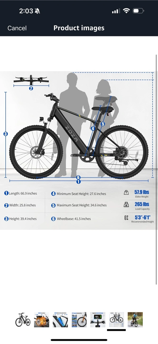 65Looking to sell my ZDZA electric bike! It has a powerful 1000W peak motor and can reach a max speed of 22 mph. The built-in removable battery is 375Wh and gives you about 40 miles of mileage. It's also waterproof with IPX6 rating. The bike weighs 57.9 lbs and can handle a load capacity of 265 lbs. Perfect for someone between 5'3" and 6'1"!