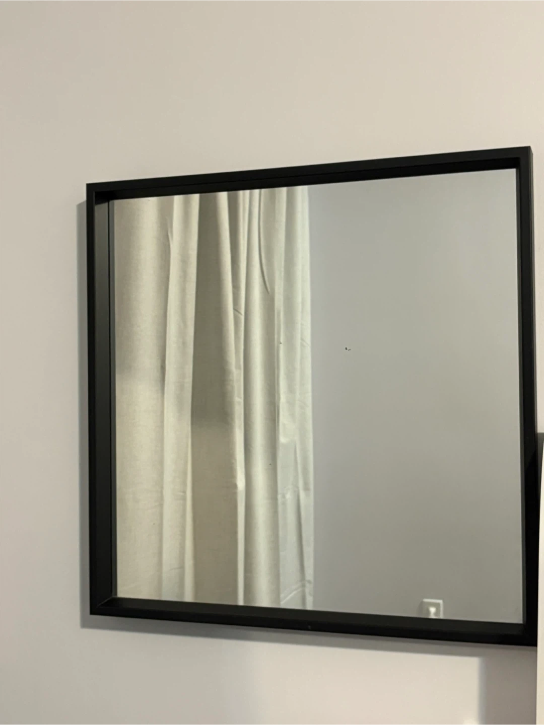A modern square wall mirror with a sleek black frame. It's perfect for adding a touch of style to any room.