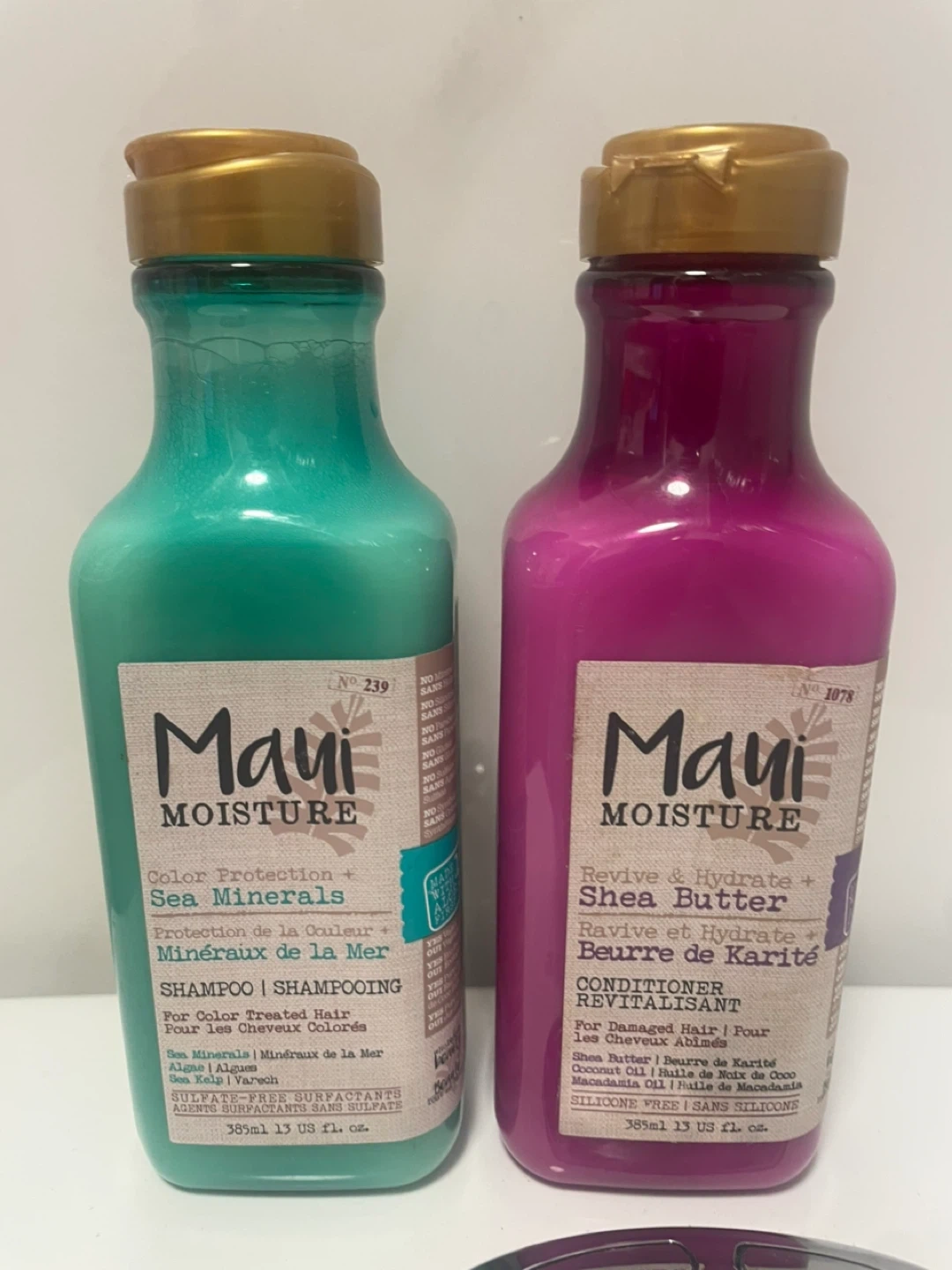 This set includes Maui Moisture's Color Protection Sea Minerals Shampoo and Revive & Hydrate Shea Butter Conditioner. Both bottles are 385ml (13 US fl. oz.). They are sulfate and silicone-free formulas.Brand new never use 😊