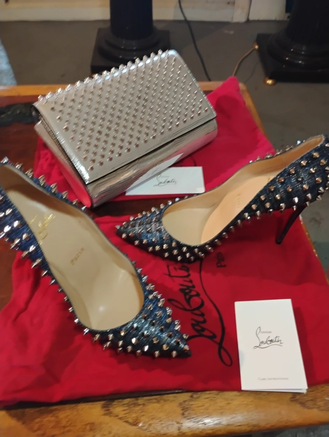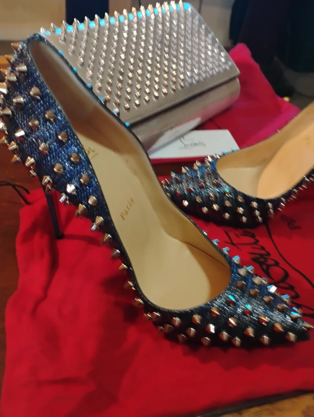 Christian Louboutin Studded Denim Heels & Clutch Set